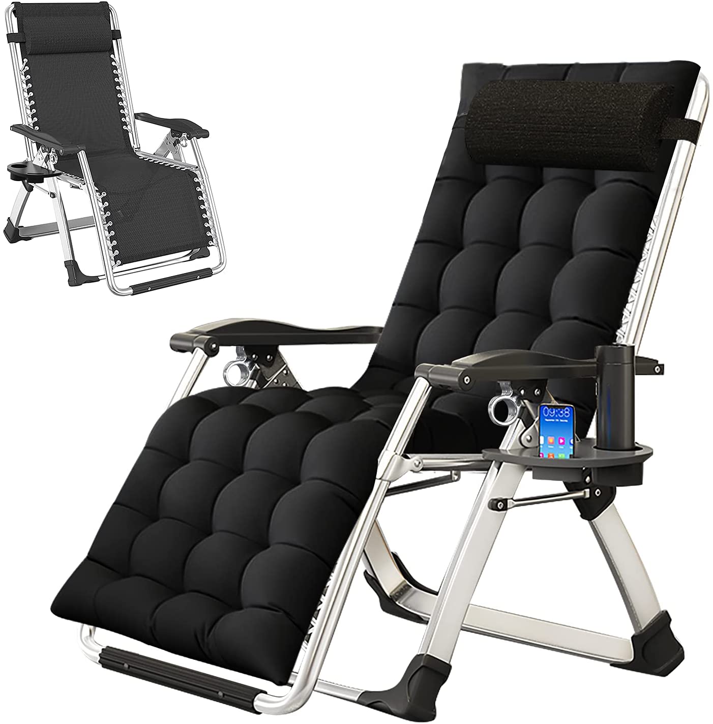 Slsy Zero Gravity Chair with with 2 Sided Cushion & Headrest, Lawn Recliner, Reclining Patio Lounger Chair, Folding Portable Chaise with Cup Holder