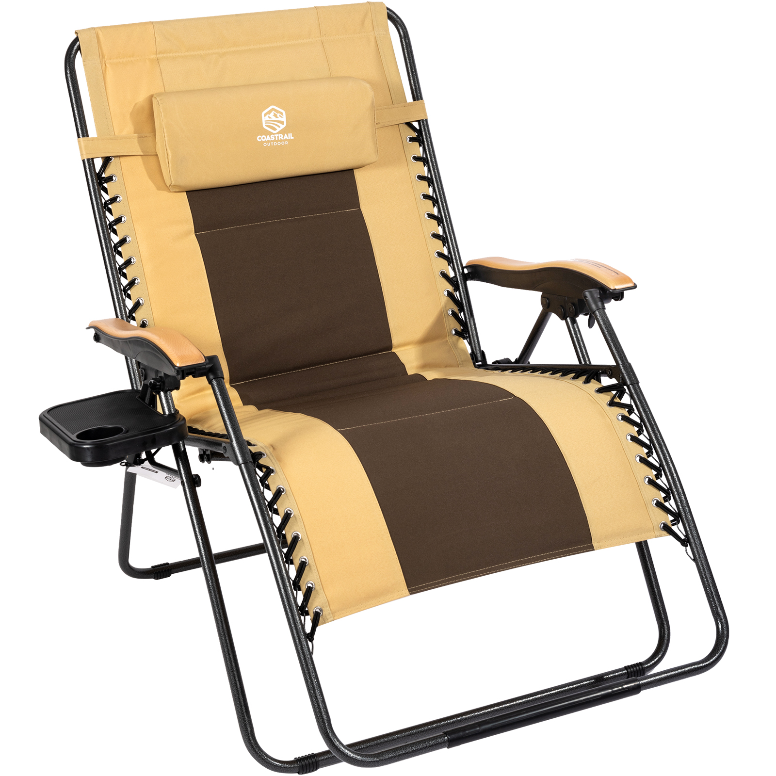 Coastrail Outdoor Oversized Zero Gravity Chair Wood Armrest Padded XXL Folding Patio Lounge Adjustable Recliner with Cup Holder & Side Table, 400lbs Weight Capacity, Brown