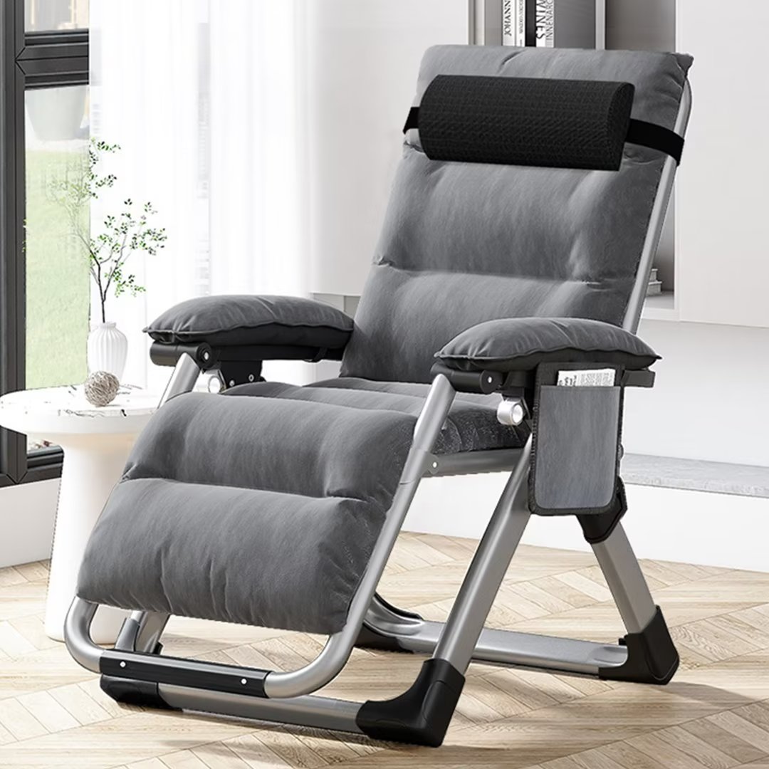 Oversized Padded Zero Gravity Chair, Folding Outdoor Patio Recliner, XL Anti Gravity Lounger for Backyard w/Headrest, Cup Holder, Side Tray