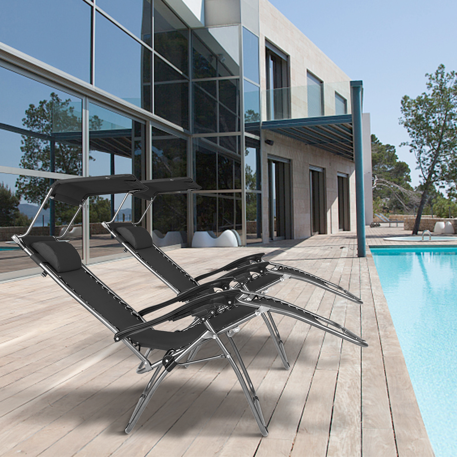 OverPatio 1 Pack Zero Gravity Chair with Head Canopy and Pillow, Black Folding Chair