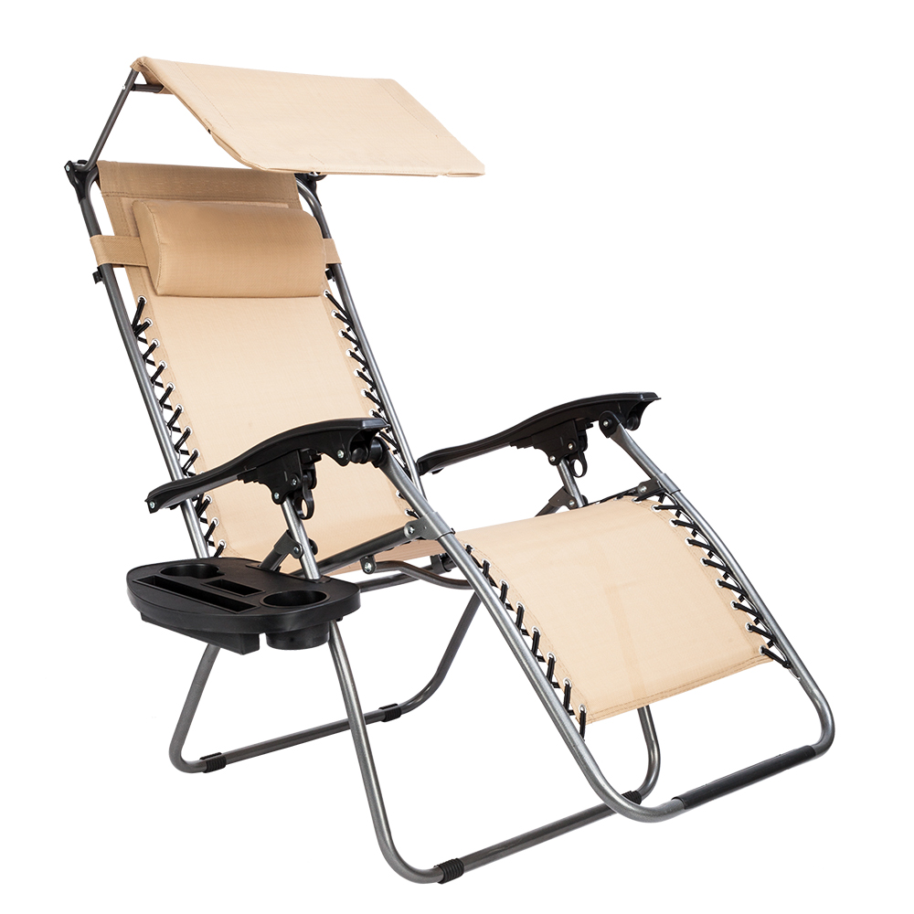 GLiving Comfortable Zero Gravity Recliner Padded Patio Lounge Chair Heavy Duty Adjustable Patio Recliner Chair with Awning Leisure Chair Perfect for Outdoor Backyard Patio Beach Pool - Khaki