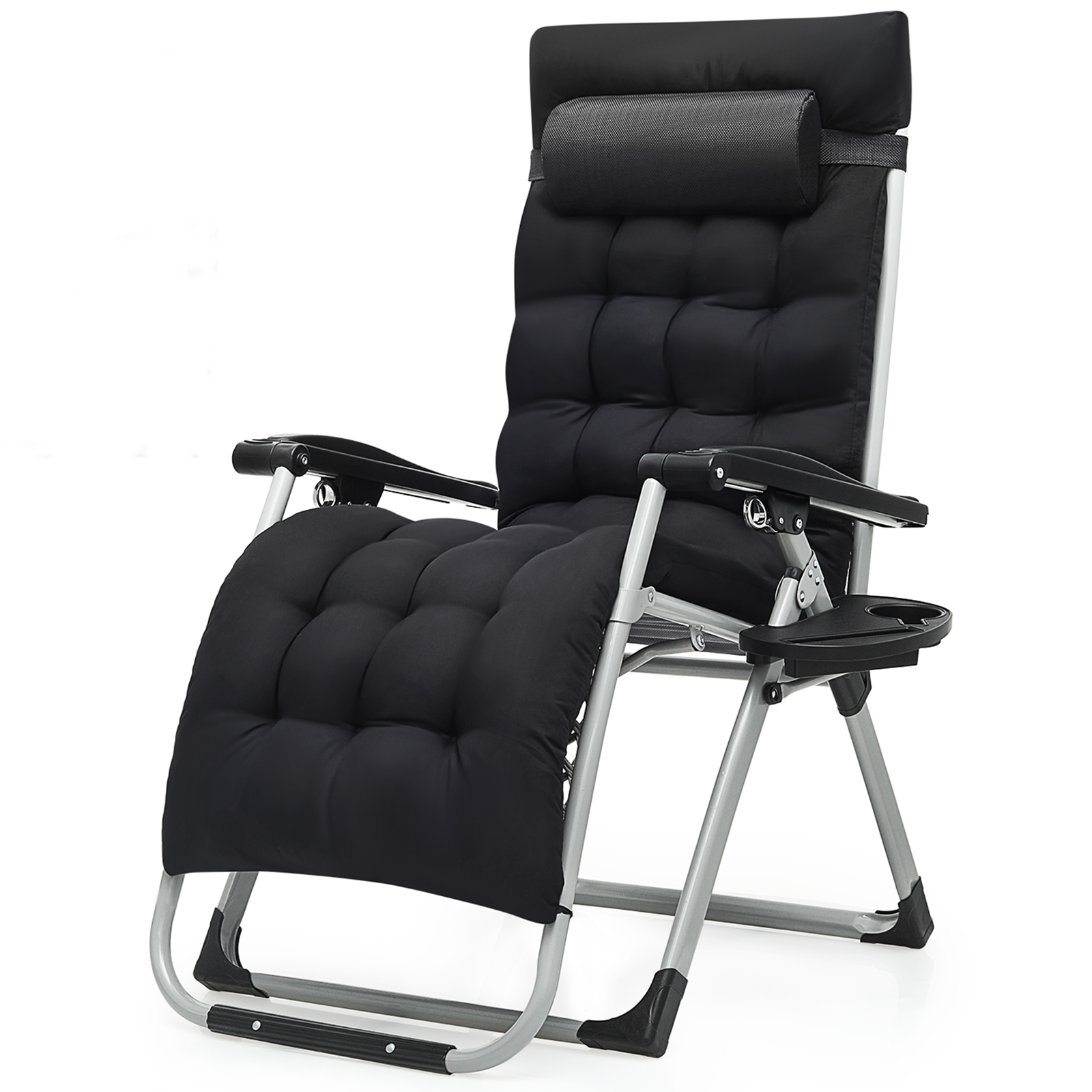 Poteban Oversized Zero Gravity Chair Set of 1, 29In XL Lawn Chair with Cushion,Support 500LB,Black