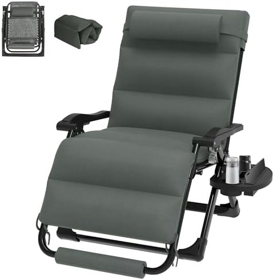 Oversized Zero Gravity Chair XL Reclining Camping Chair w/Washable Cushion Outdoor Lounge Chairs Patio Recliner with Large Cup Holder Footrest Padded Headrest Support 500LBS Grey
