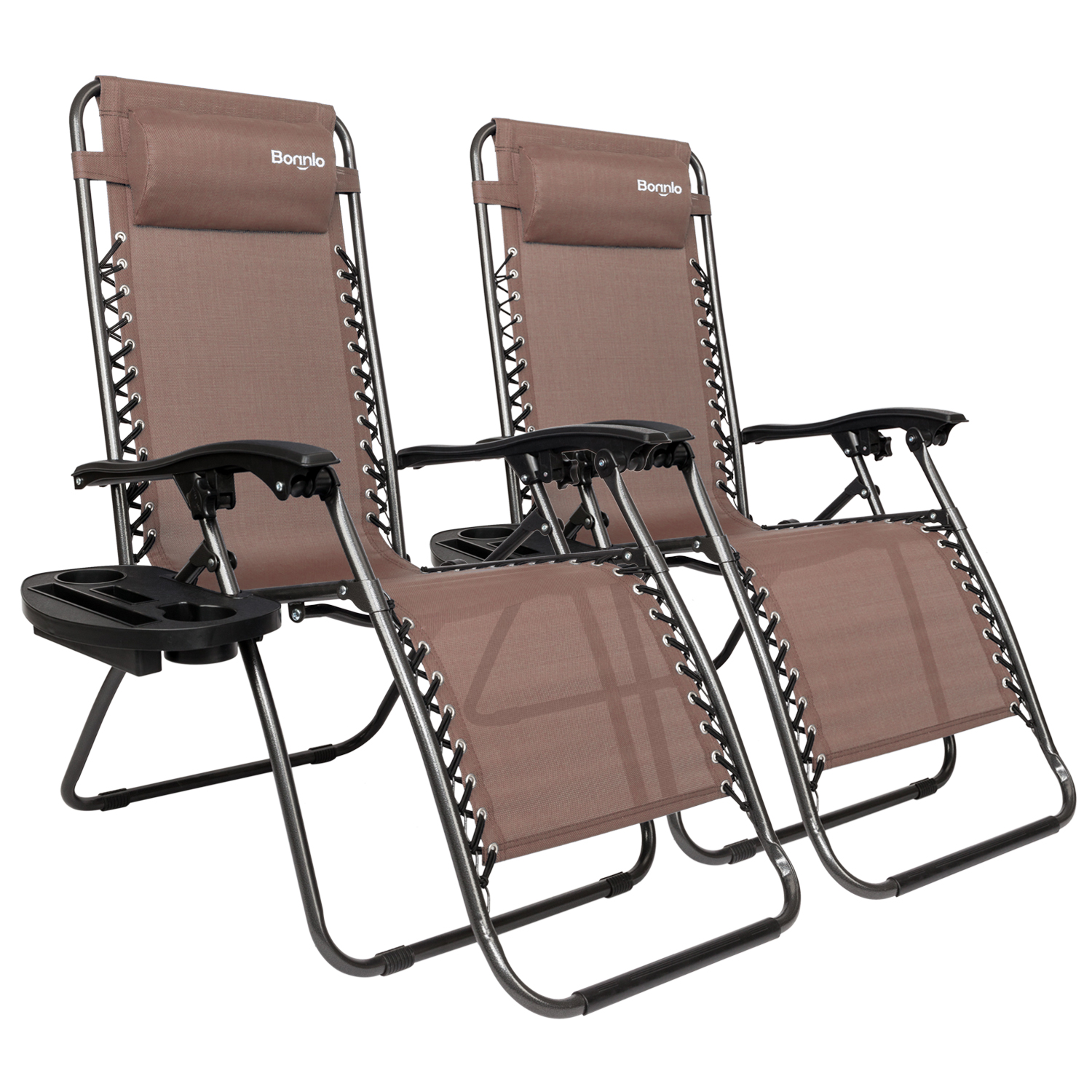 Ktaxon 2 Pcs Zero Gravity Chairs, Outdoor Lounge Chair for Patio Poolside, Brown