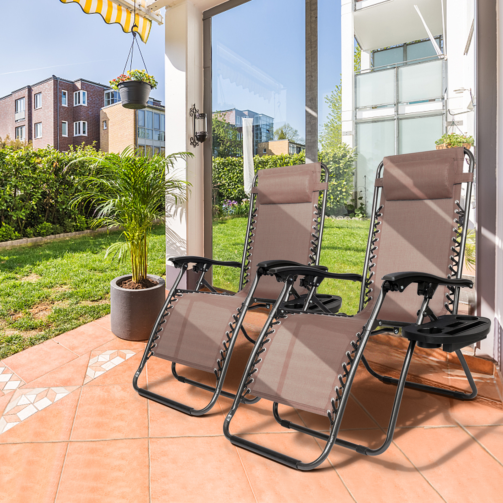 iTopRoad 2 Pieces Zero Gravity Chair Camp Reclining Lounge Chairs, Brown