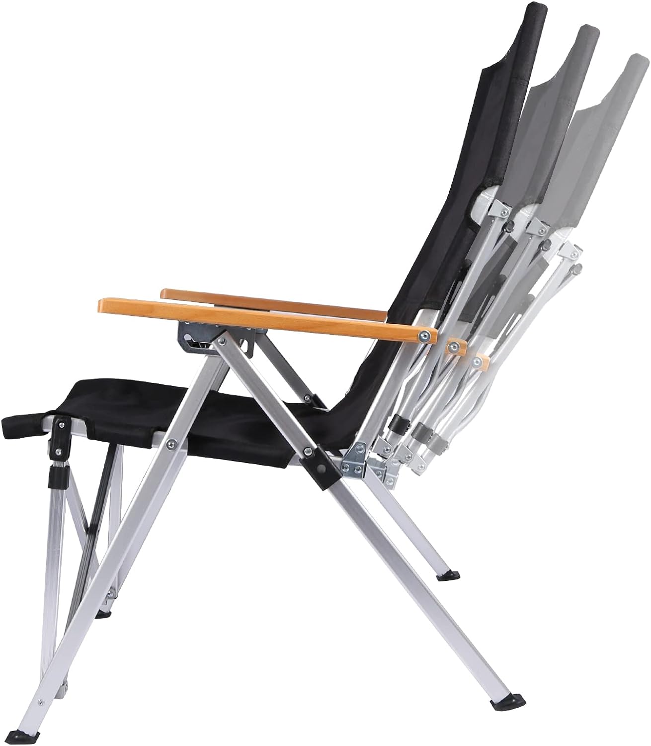 REDCAMP Folding Camping Chair 3 Position Adjustable, Aluminum Folding Recliner Chair Portable for Camping Outdoor Beach, Black