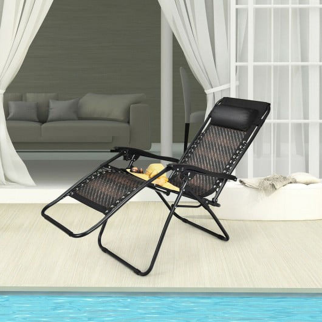 Folding Rattan Zero Gravity Lounge Chair with Removable Head Pillow-Brown