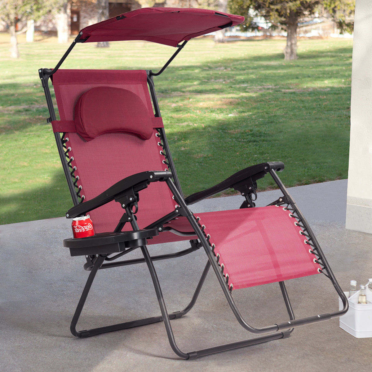 Folding Zero Gravity Lounge Chair with Shade Canopy and Cup Holder - Relax and Unwind with Wine