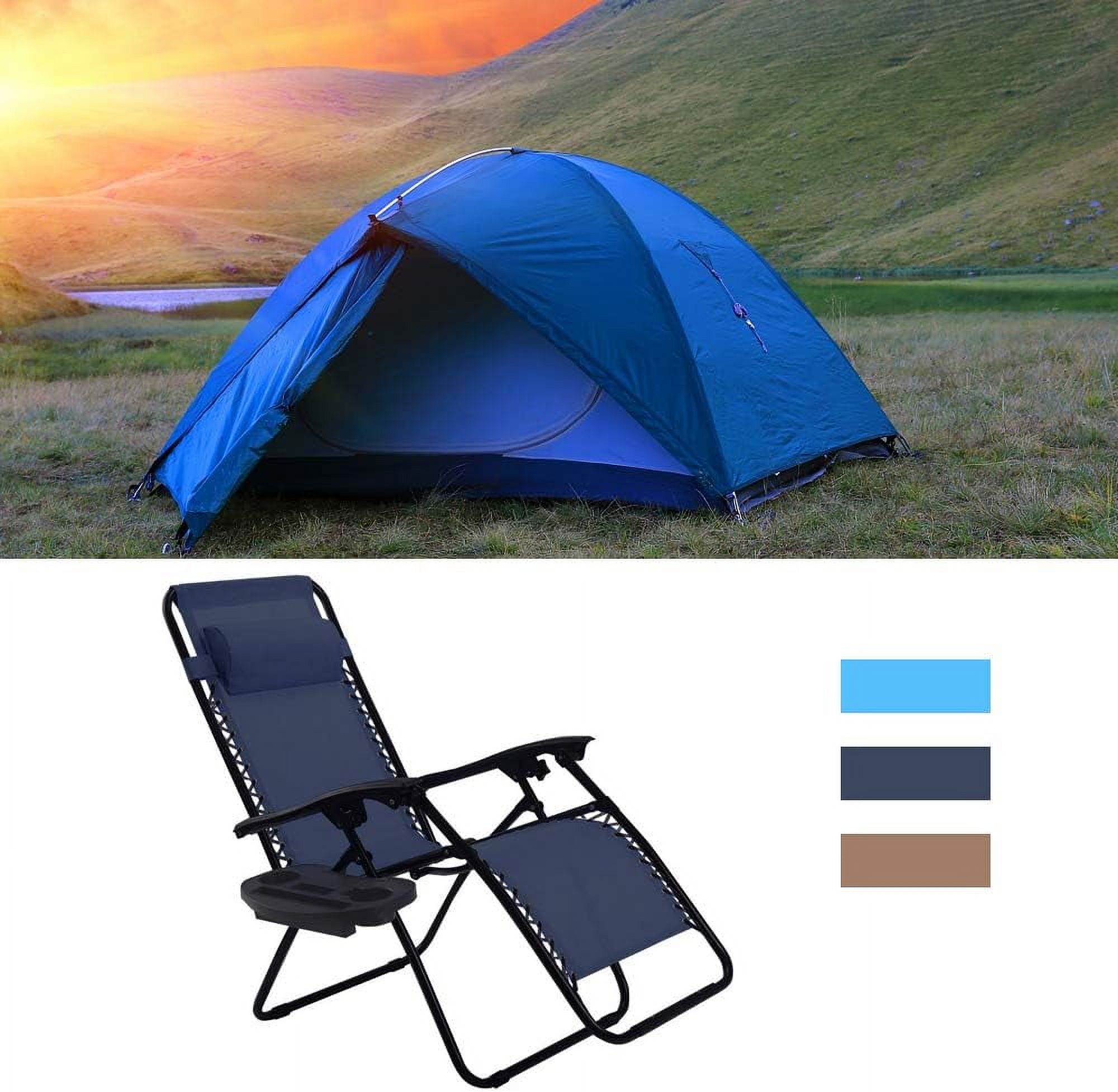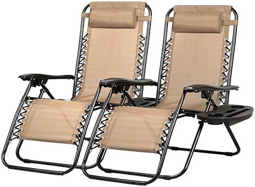 Set of 2 Relaxing Recliners Patio Chairs Adjustable Steel Mesh Zero Gravity Lounge Chair Recliners with Pillow and Cup Holder (Khaki)