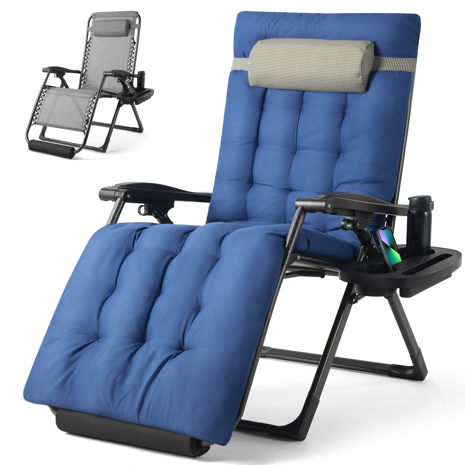 Artist Hand Oversize 27.95" Zero Gravity Chair Lawn Chaise Patio Lounge Folding Adjustable Recliner with Detachable Soft Cushion, Adjustable Headrest, Foot Pad & Cup Holder