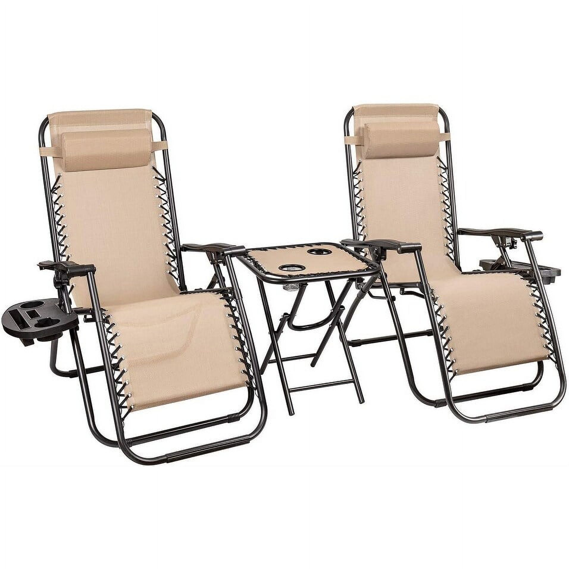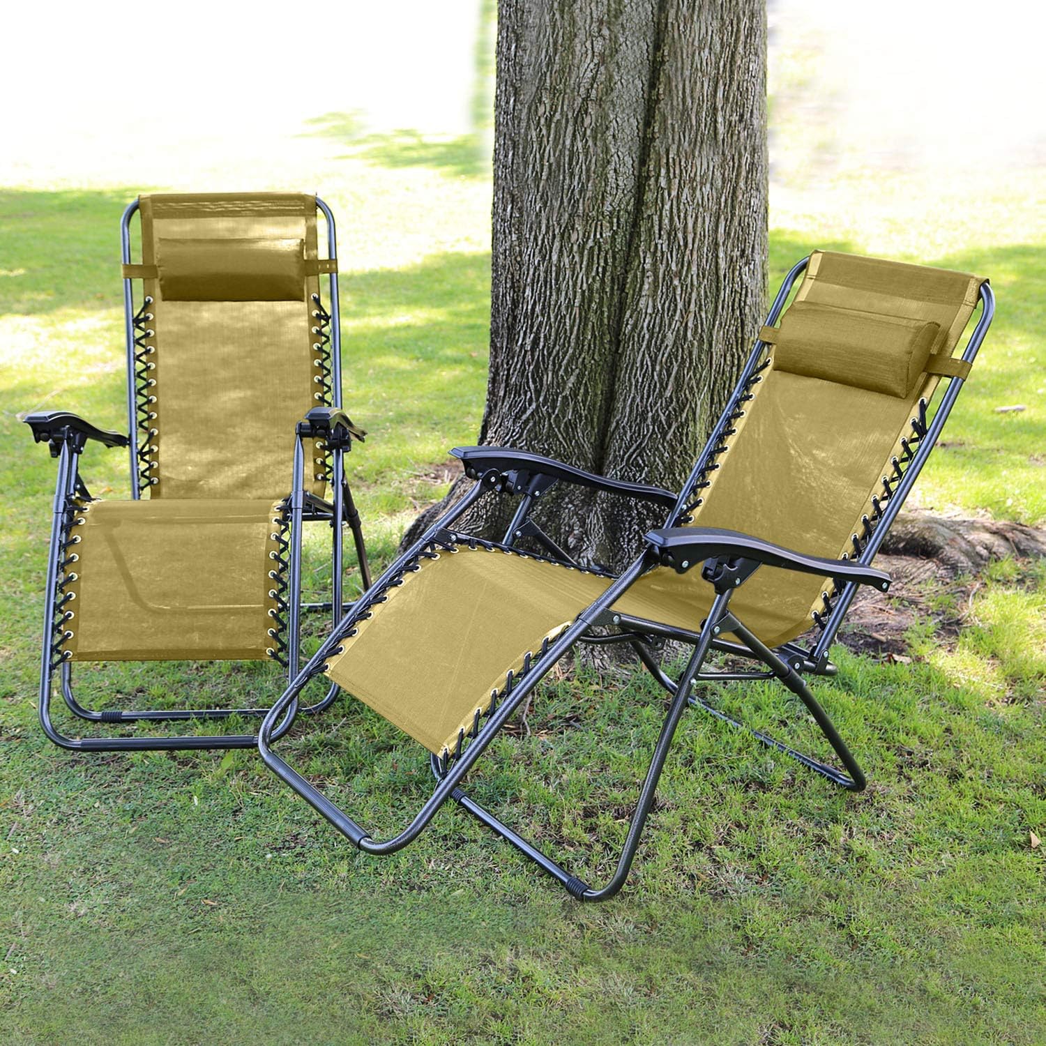 2 Adjustable Zero-Gravity Reclining Outdoor Lounge Chairs w/Pillows & Cup Holder Side Tray, Supports 330lbs, for S, Porch, Deck, Poolside, Beach, Lawn, Yard - Black/Blue/Brown/Tan