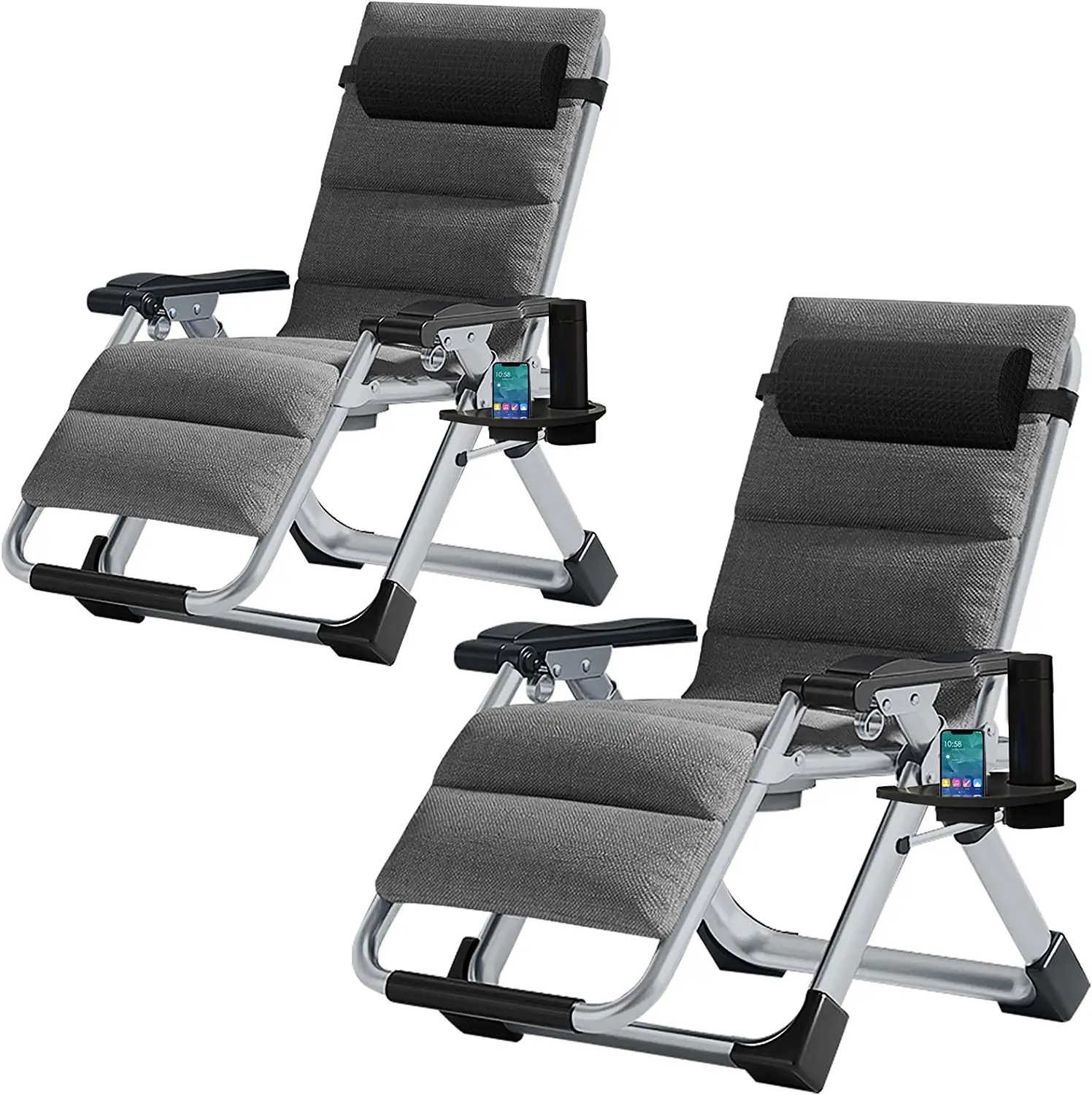 Slsy 2 Pack Zero Gravity Chair, Adjustable Reclining Lounge Chair with Removable Cushion, Headrest, Cup Holder for Indoor Outdoor, Supports Over 440lbs