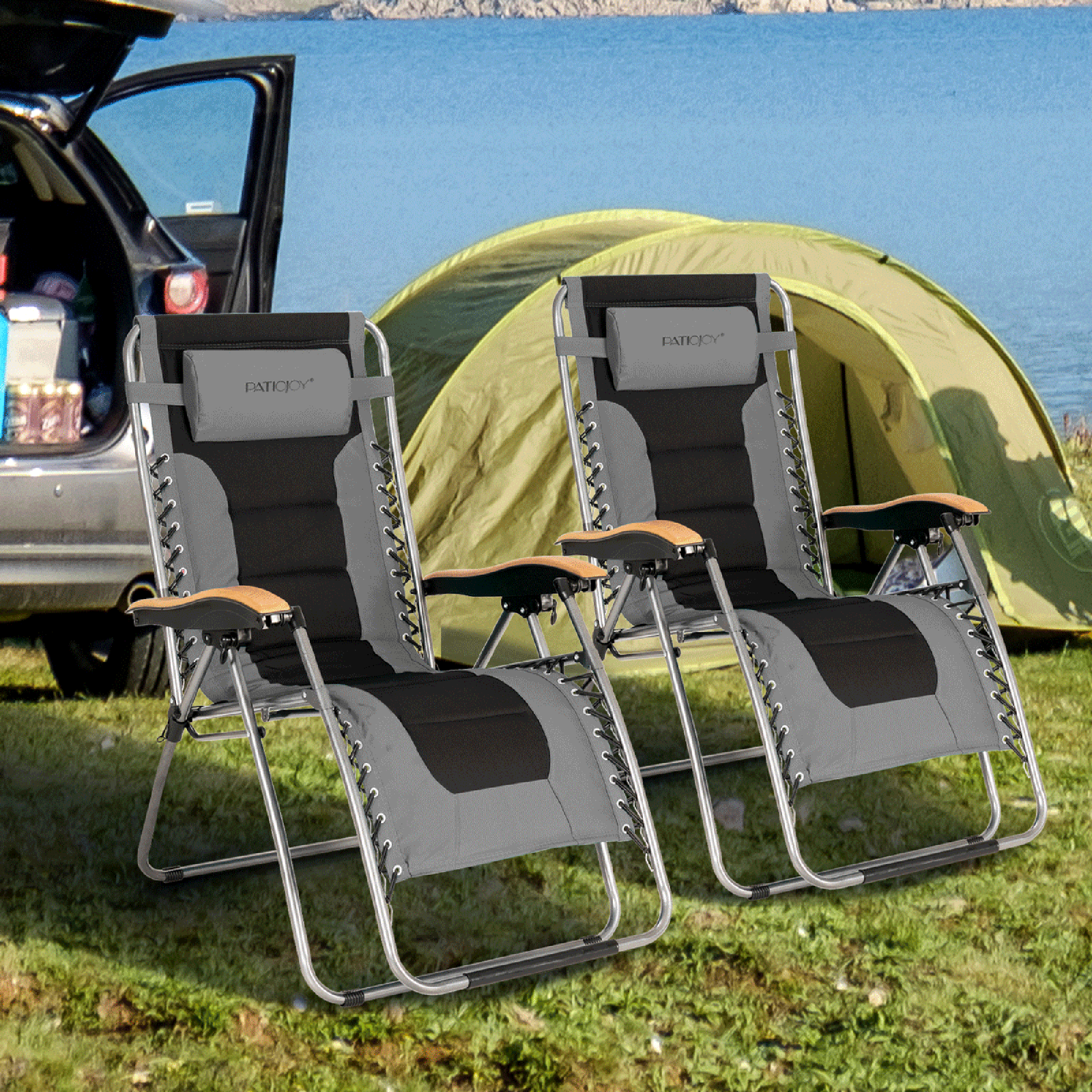 Sophia&William Outdoor XL Oversized Padded Zero Gravity Chair Camping Recliner - Grey