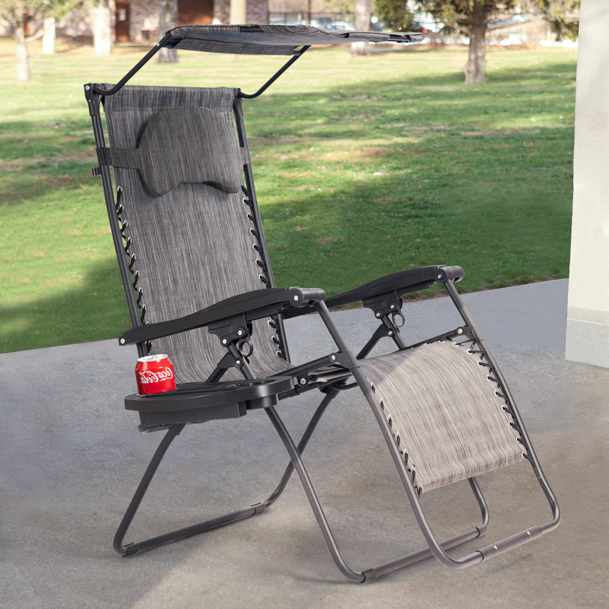 Folding Zero Gravity Lounge Chair with Shade Canopy and Cup Holder - Gray