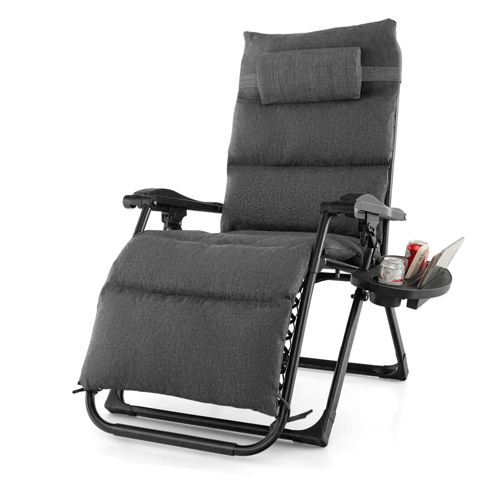 Exdeerjoy Adjustable Metal Zero Gravity Lounge Chair with Removable Cushion and Cup Holder Tray, Gray