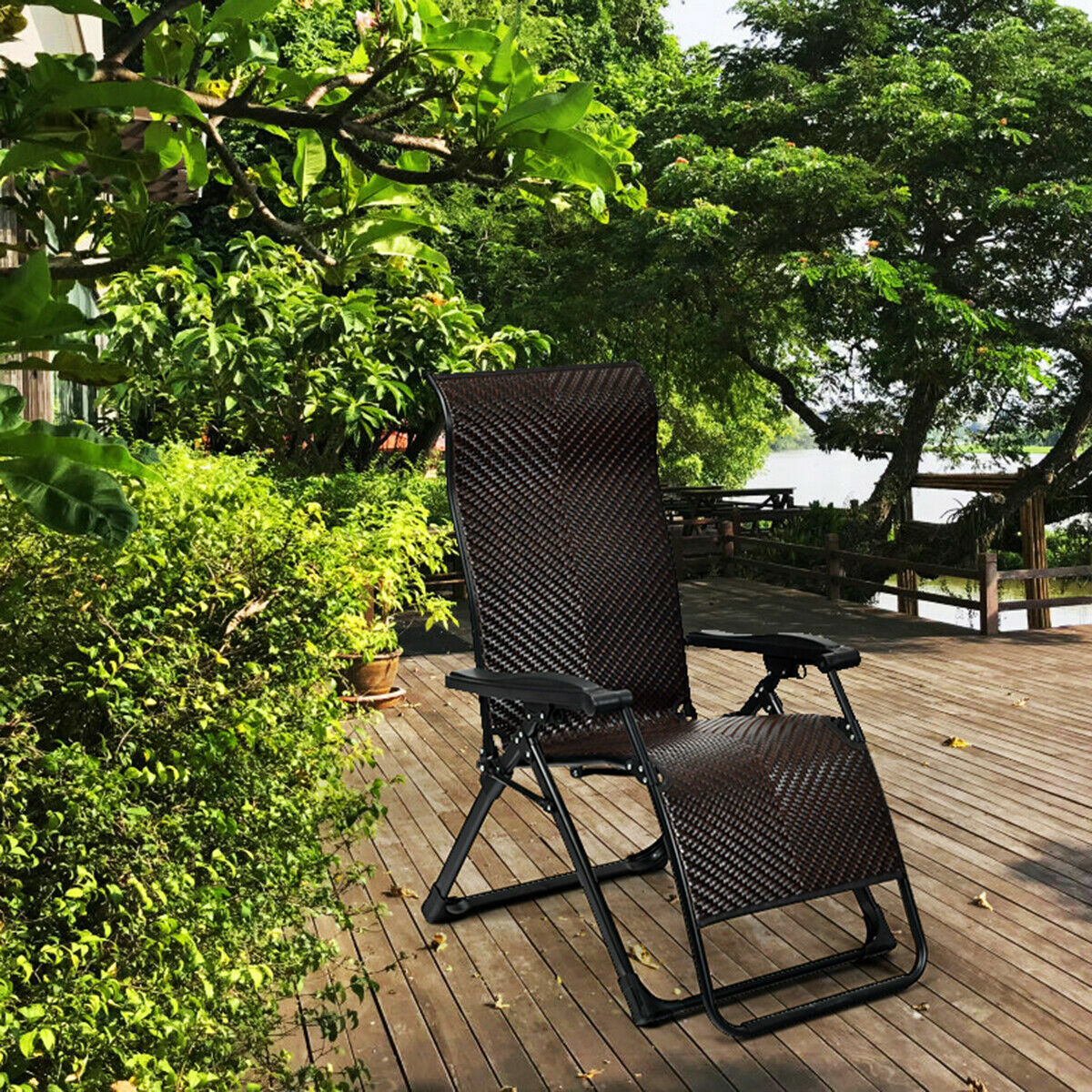 Rattan Patio Zero Gravity Lounge Chair with Folding Recliner and Adjustable Headrest