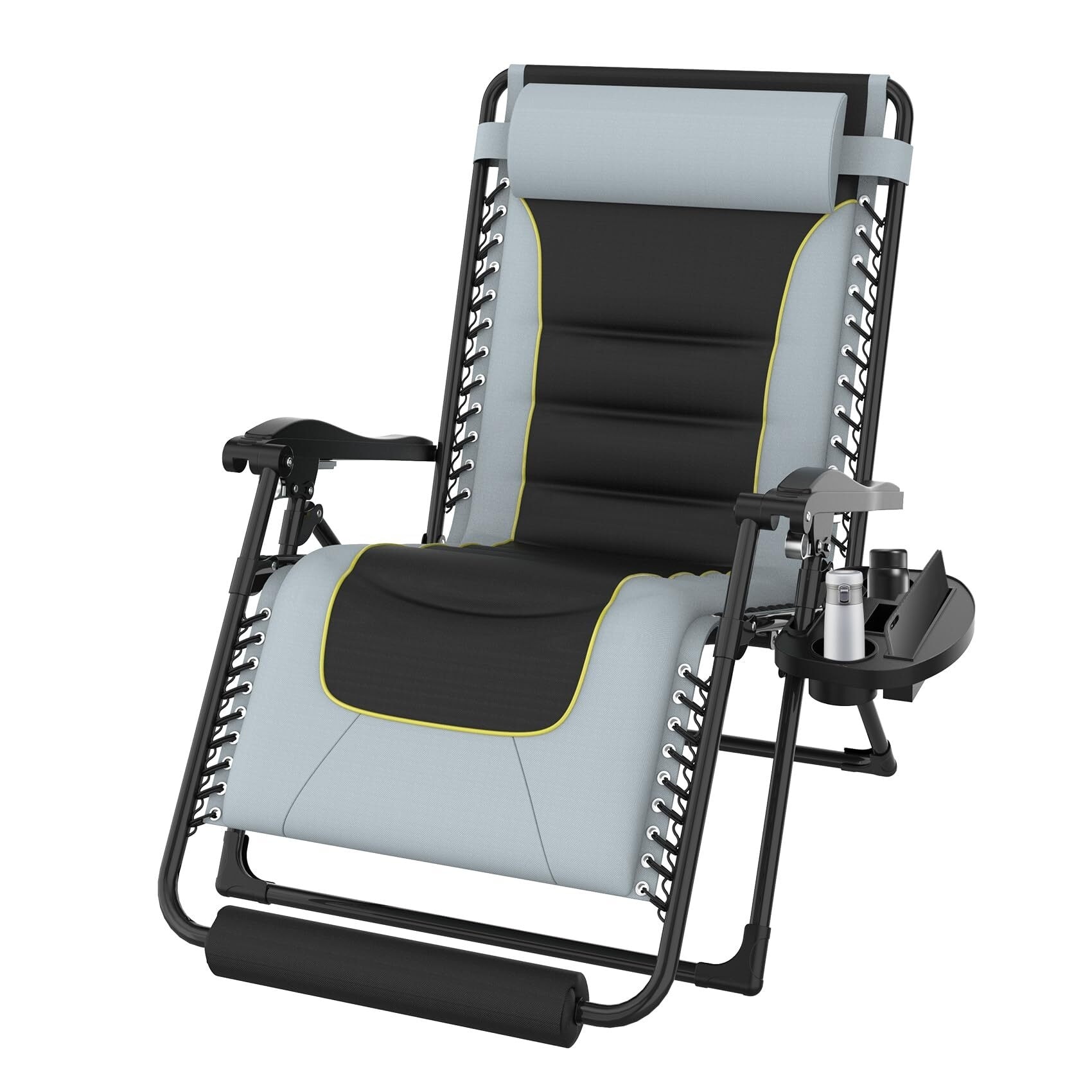 Techmilly Oversized Zero Gravity Chair Set of 1, 29In XL Lawn Chair with Cushion,Support 500LB,Black