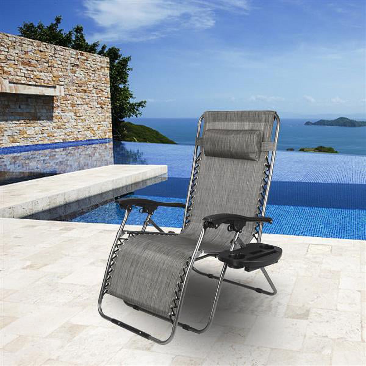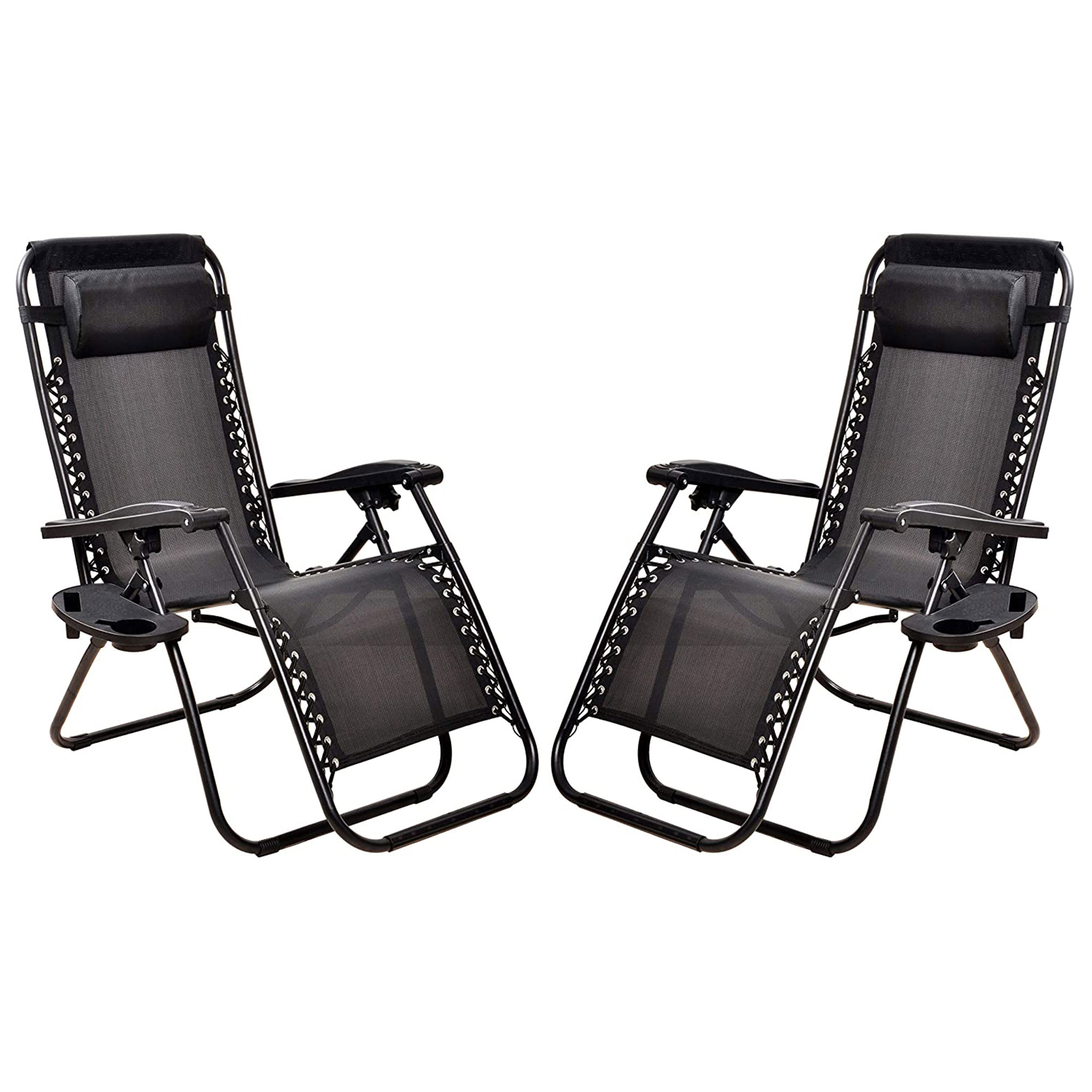 Zero Gravity Lounge Chairs- Set of 2- Gray Folding Anti-Gravity Recliners- Side Table Cup Holder & Pillow-For Outdoor Lounging by Lavish Home