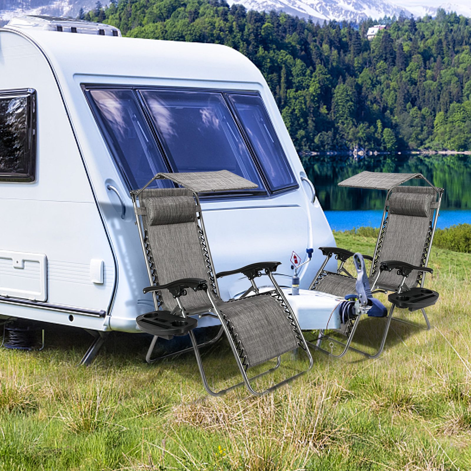 Zimtown 2PCS Outdoor Zero Gravity Folding Lounge Chair for Beach Patio Pool Yard Gray