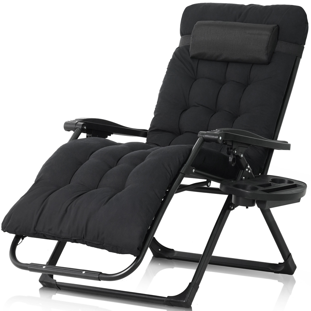 CAPHAUS Oversized Zero Gravity Lounge Chair, XL Zero Gravity Chair, Folding Reclining Chair w/ Removable Pad, Side Tray, Anti-gravity Chair for Outdoor & Indoor, Reclining Patio Chair w/ Cushion