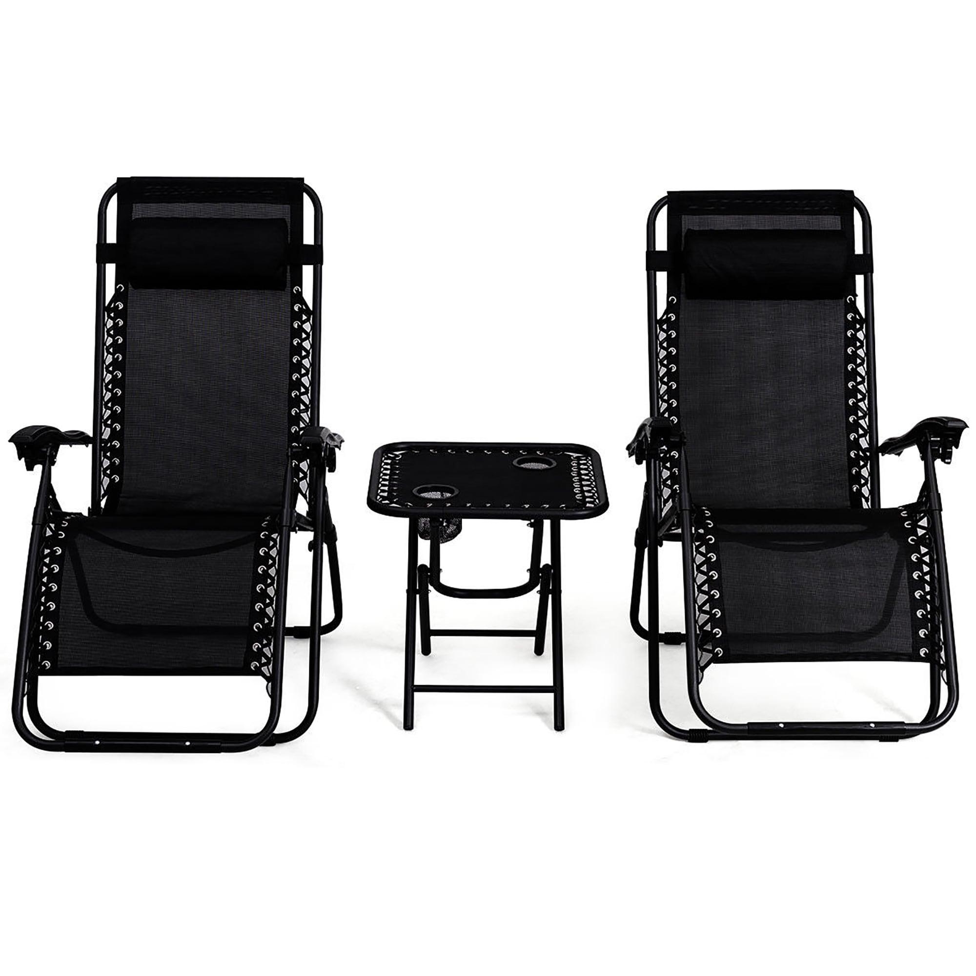 3 PCS Zero Gravity Chair Folding Lounge Table Chair Set Black