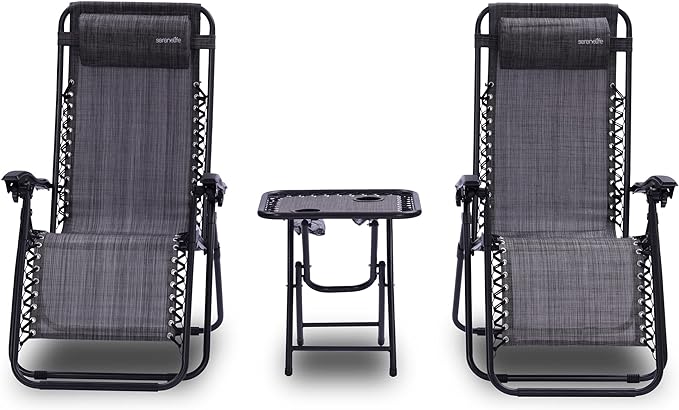 Slsy Zero Gravity Chair with with 2 Sided Cushion & Headrest, Lawn Recliner, Reclining Patio Lounger Chair, Folding Portable Chaise with Cup Holder