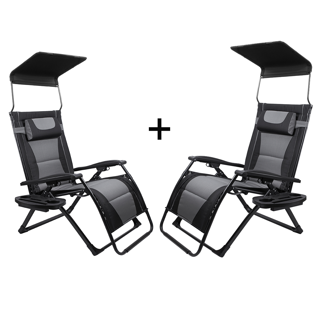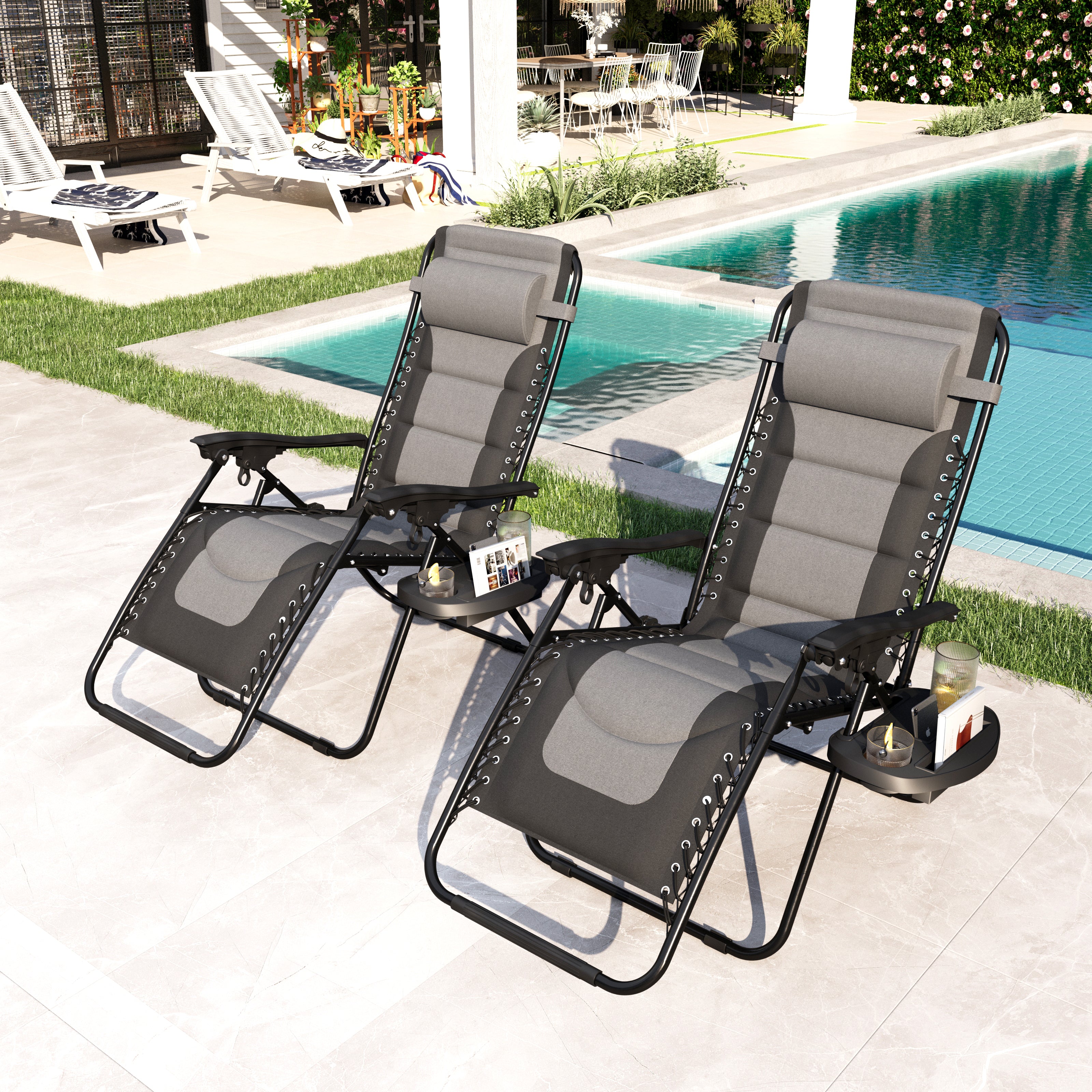 Sophia&William Set of 2 Outdoor Zero Gravity Chairs Padded Camping Lounge Recliner - Gray