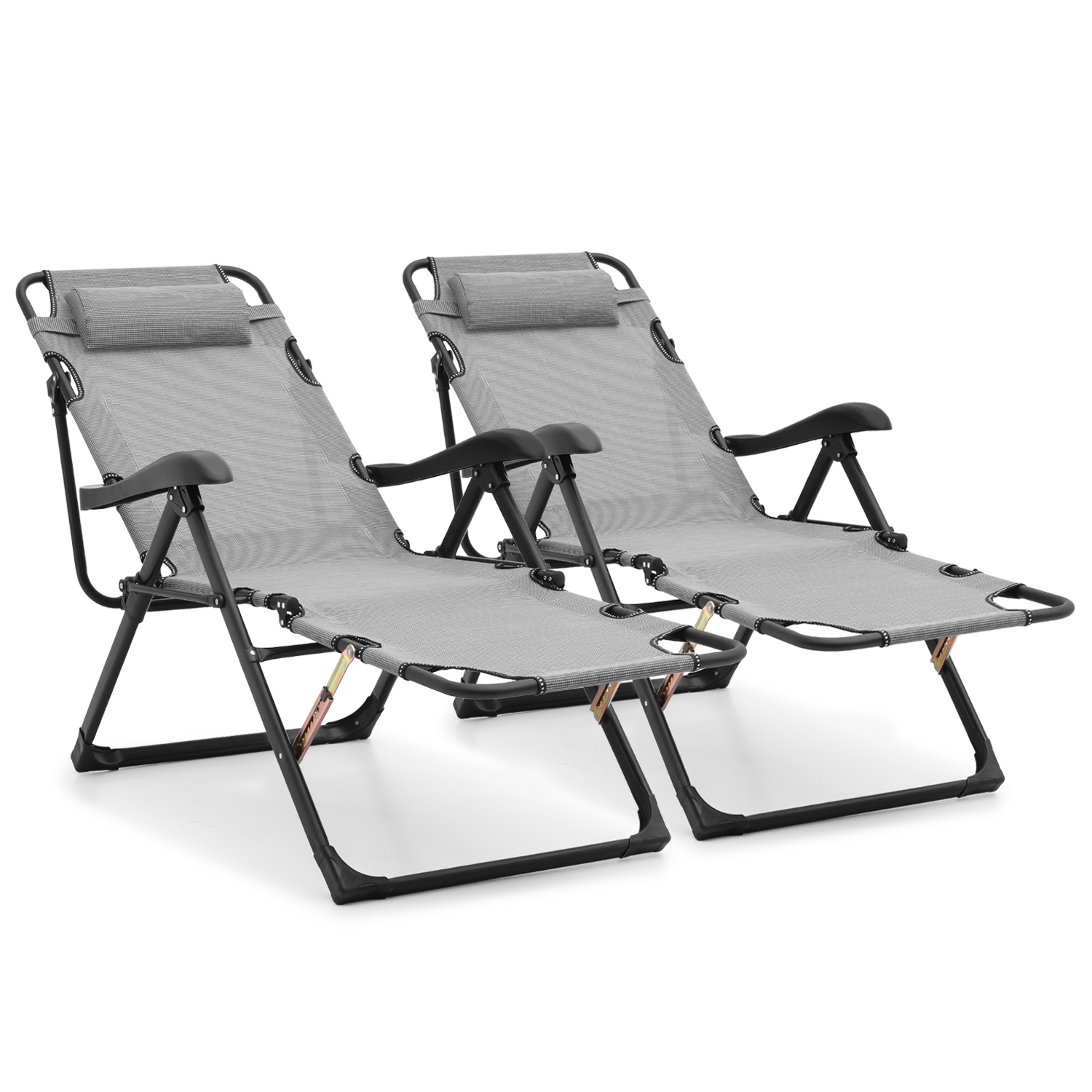 Magshion 2 Pack Outdoor Zero Gravity Lounge Chair, Folding Camping Patio Pool Recliner, Indoor Reclining Sleeping Bed with Adjustable Angle and Headrest, Grey