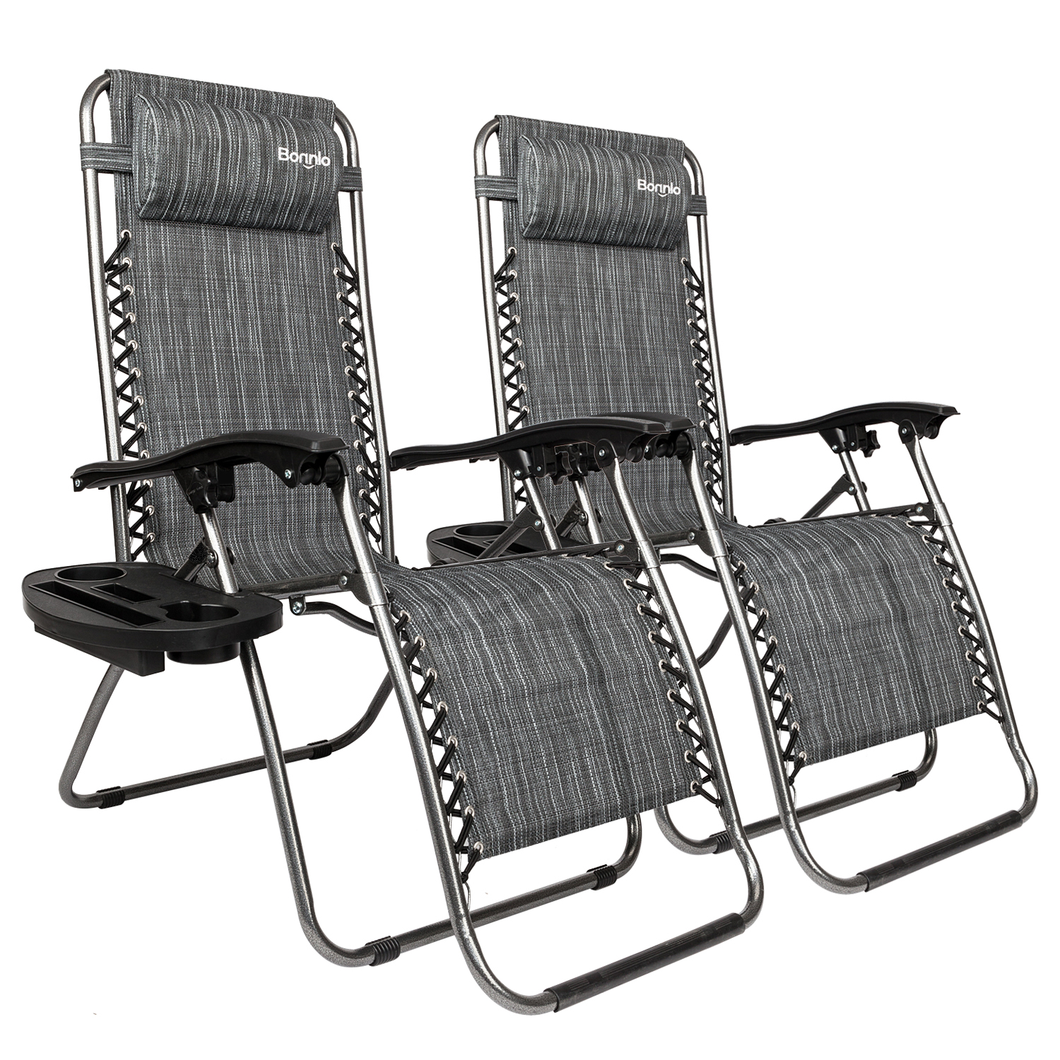 Ktaxon 2 Pack Zero Gravity Chair with Pillow and Cup Holder Adjustable Fodling Chair,Gray