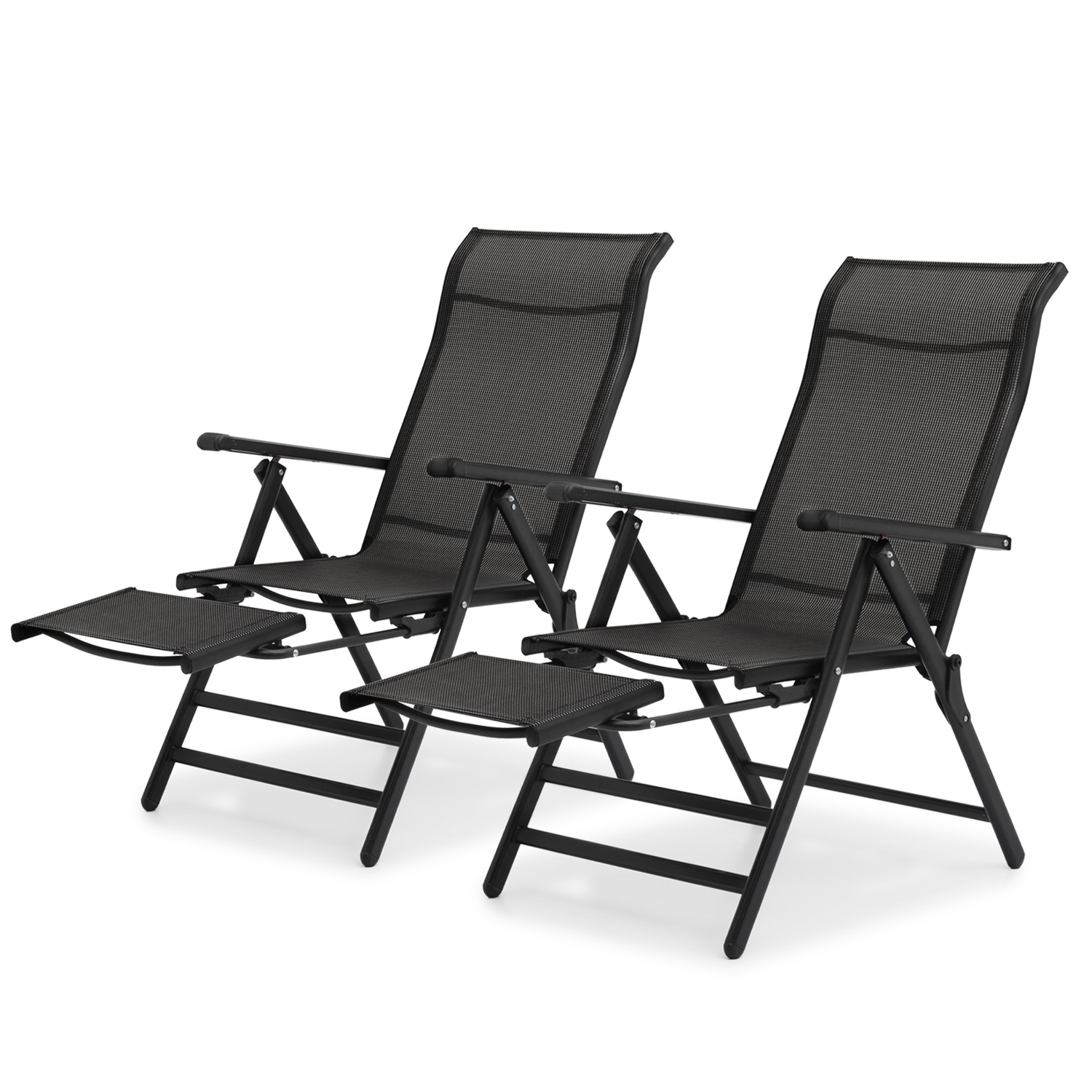 MoNiBloom 2 Pack Foldable Lounge Chair with Retractable Footrest, Zero Gravity Reclining Chair with Armrests, 95-140? Adjustable Recliner, Black