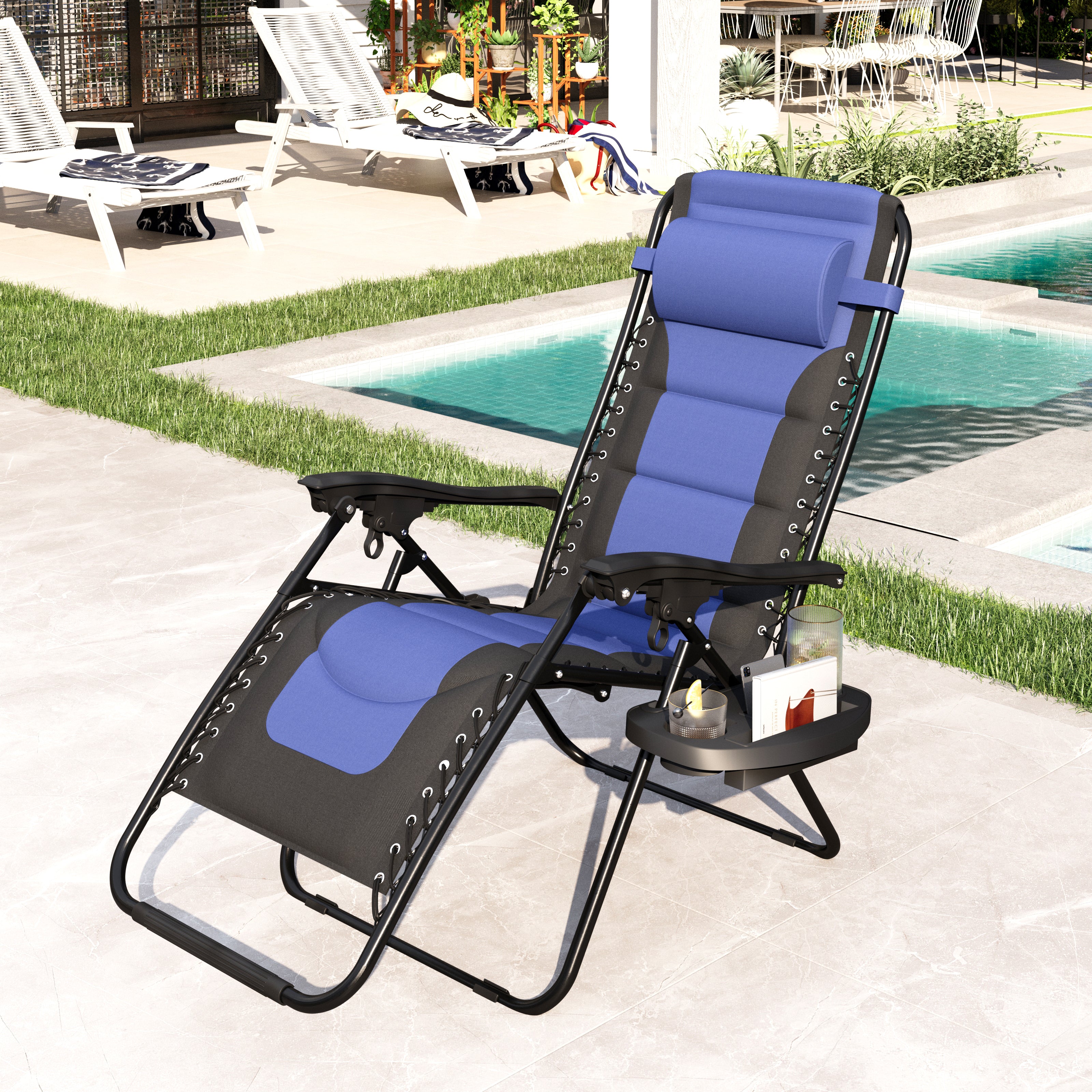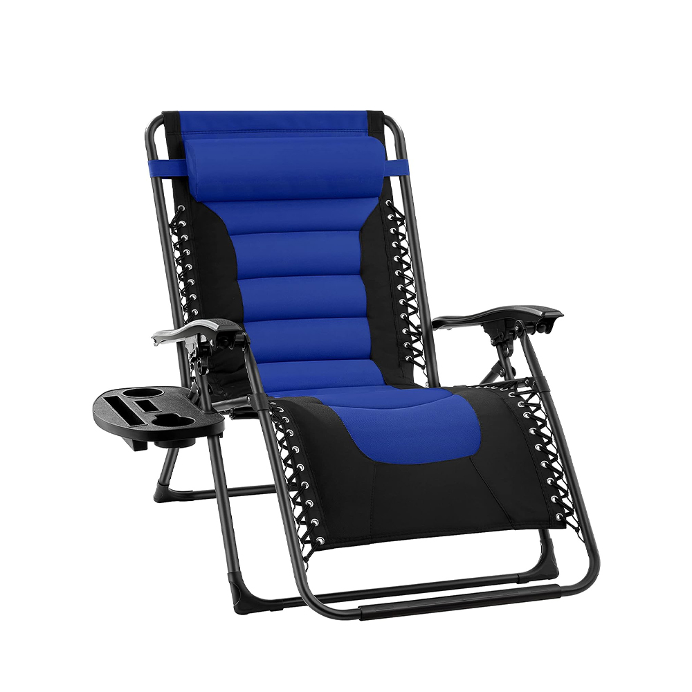 Zero Gravity Chair, Oversized Padded Folding Recliner with 2 Upholders, 1 Phone Mount, Blue