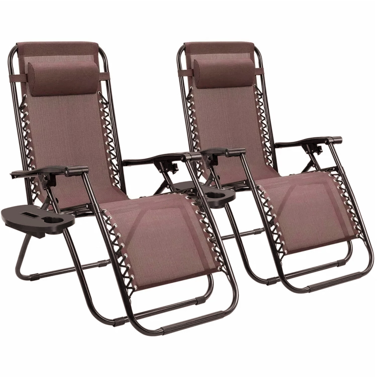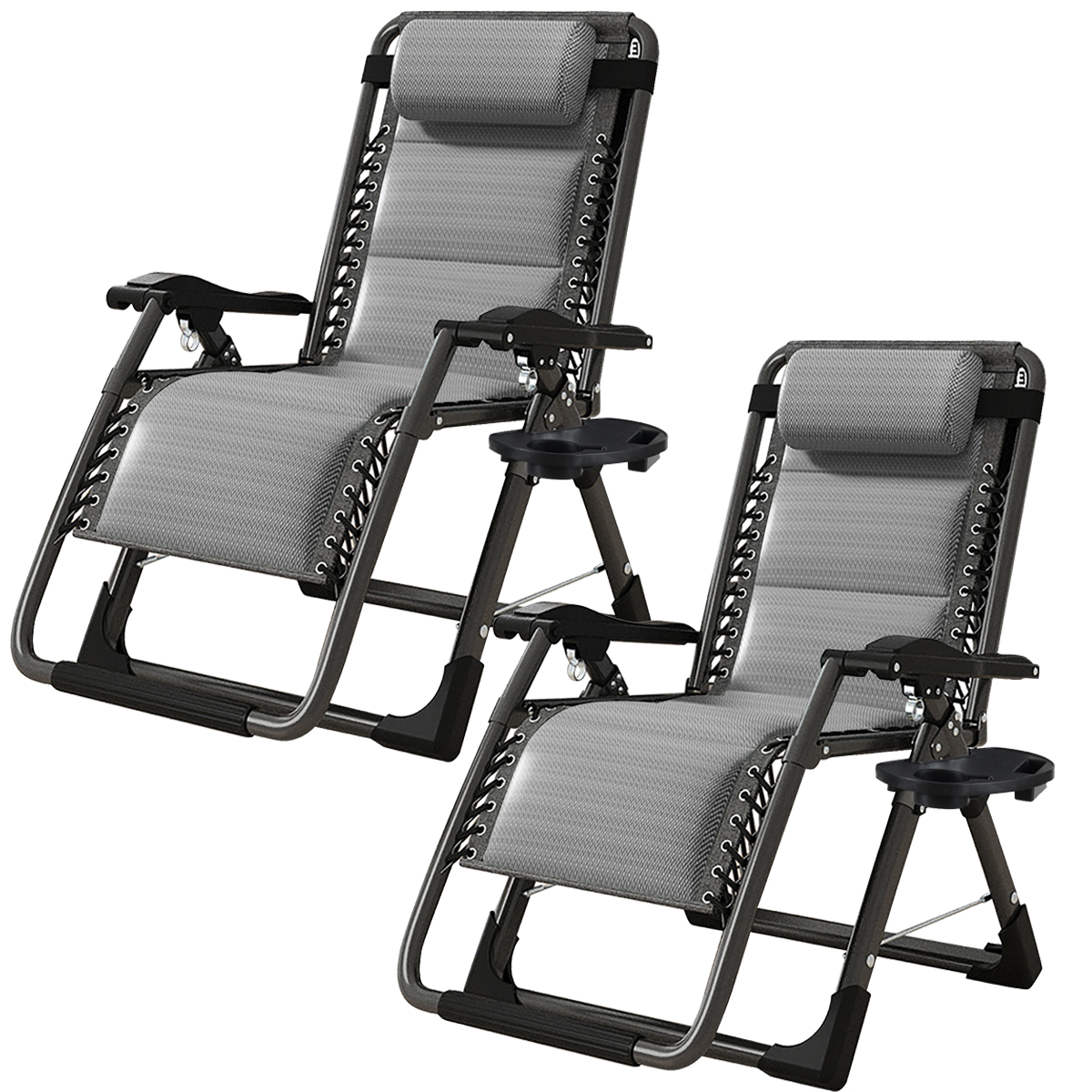 Slsy 2 Pack Zero Gravity Chair, Padded Adjustable Reclining Lounge Chair with Removable Headrest, Cup Holder for Indoor Outdoor, Supports Over 440lbs