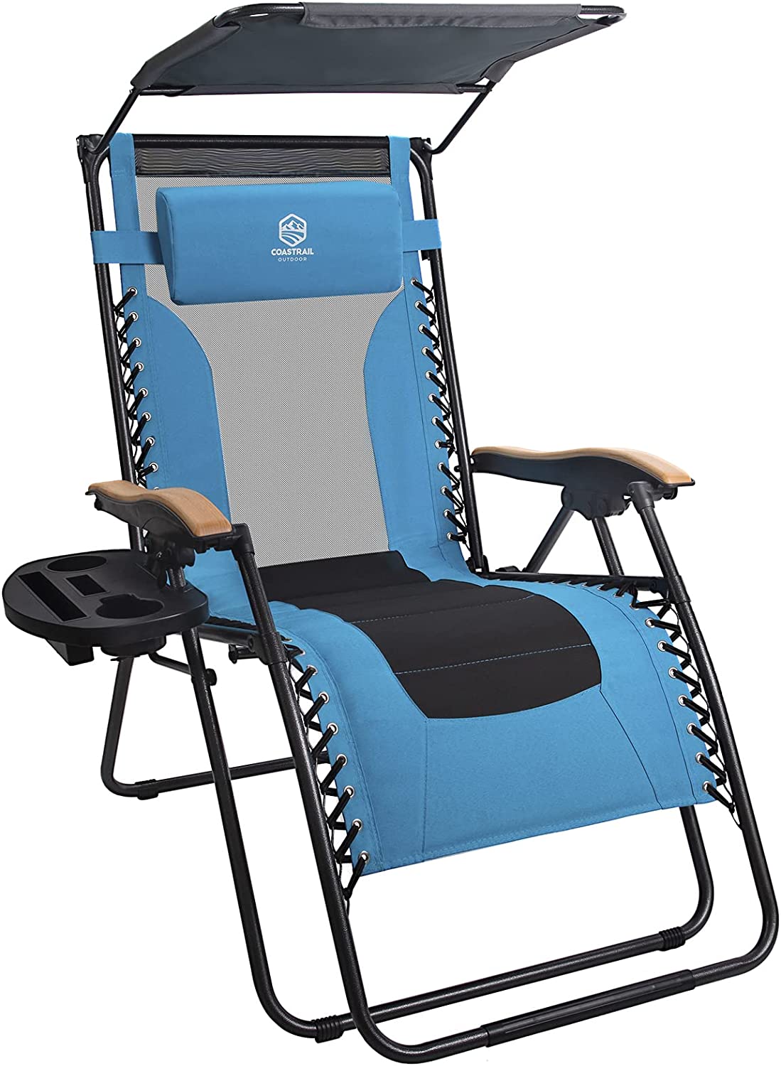 Coastrail Outdoor Zero Gravity Chair Premium Reclining Lounger with Sun Shade, Padded Seat, Mesh Back, Pillow, Cup Holder & Side Table for Sports Yard Patio Lawn Camping, Support 400lbs, Aqua/Black