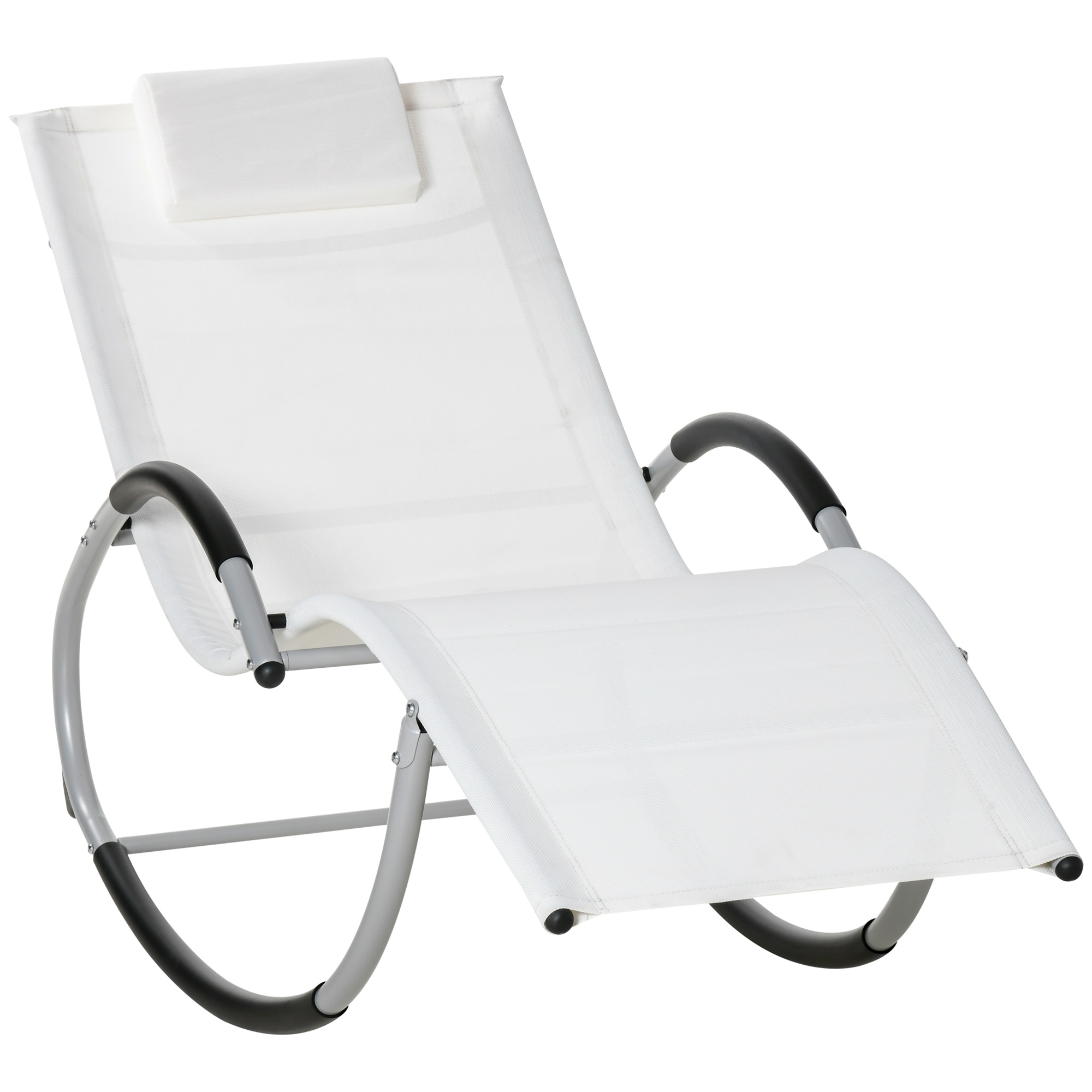 Outsunny Pool Lounge Outdoor Rocking Chair, Pillow, White