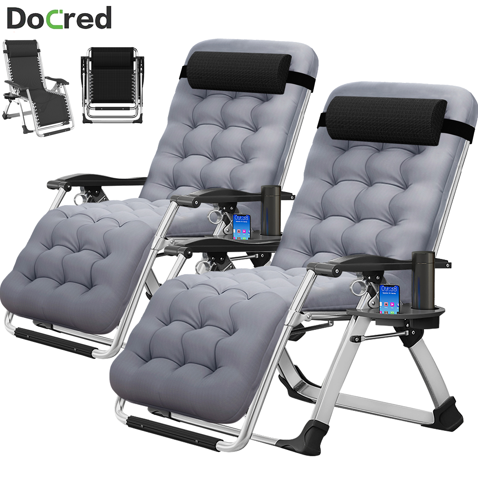 Docred 2-Pack Zero Gravity Chair, Reclining Lounge Chair with Removable Cushion & Tray for Indoor and Outdoor, Patio Recliner Folding Reclining Chair