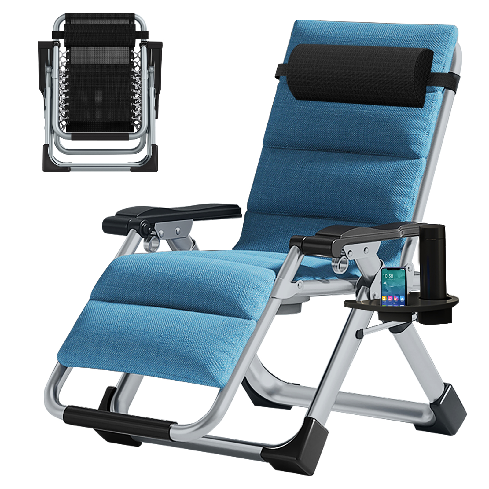 NAIZEA Zero Gravity Chairs Outdoor Oversized Folding Patio Lounge Chair with Mat,Tray,Pillow