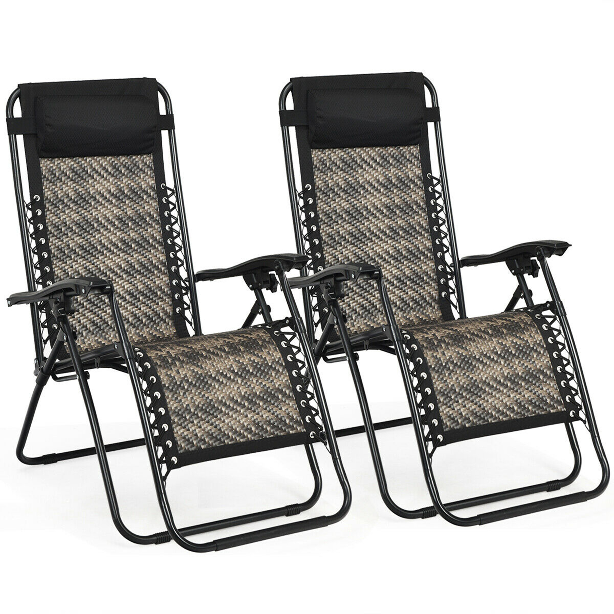 Gymax Set of 2 Folding Rattan Patio Zero Gravity Lounge Chair Recliner w/ Headrest