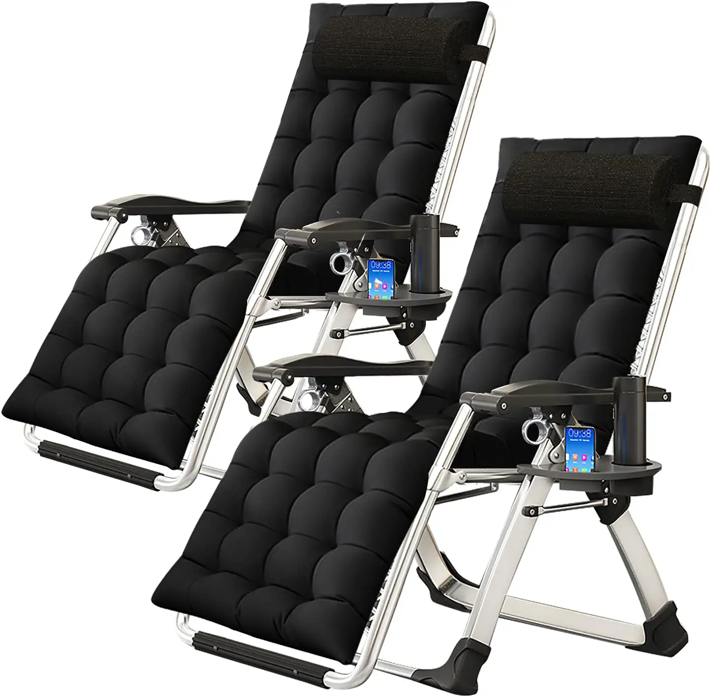Slsy 2 Pack Zero Gravity Chair, Adjustable Reclining Lounge Chair with Removable Cushion, Headrest, Cup Holder for Indoor Outdoor, Supports Over 440lbs
