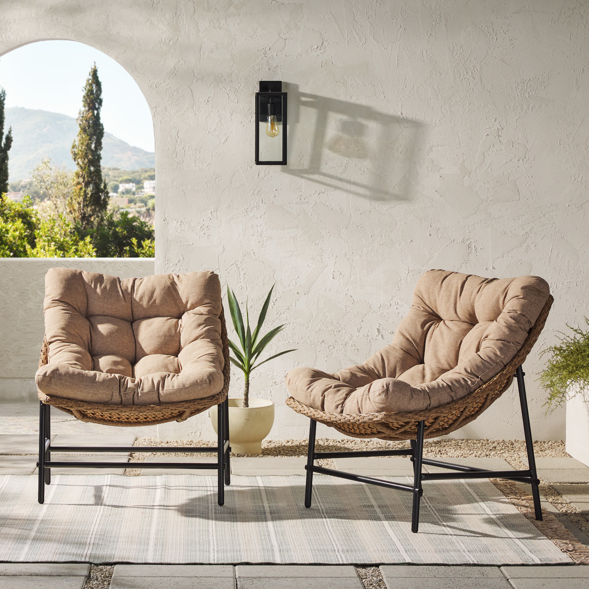 Papasan Scoop Outdoor Patio Chairs, Set of 2 - Natural