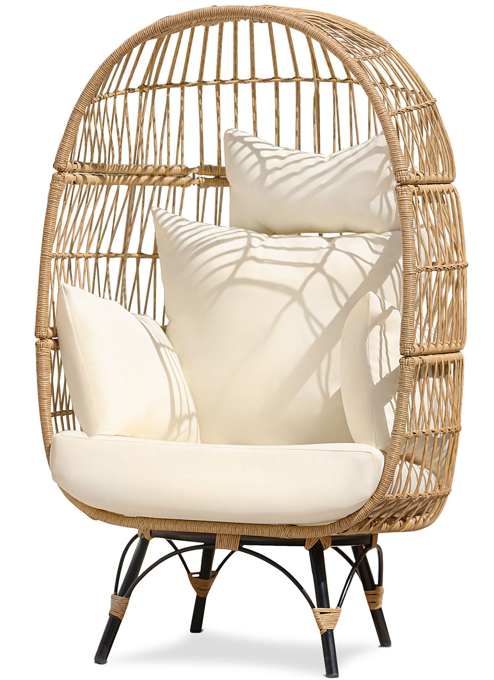 NICESOUL Outdoor Patio Lounge Chair Boho Stationary Wicker Yellow Egg Chair for Indoor Living Room 440lb