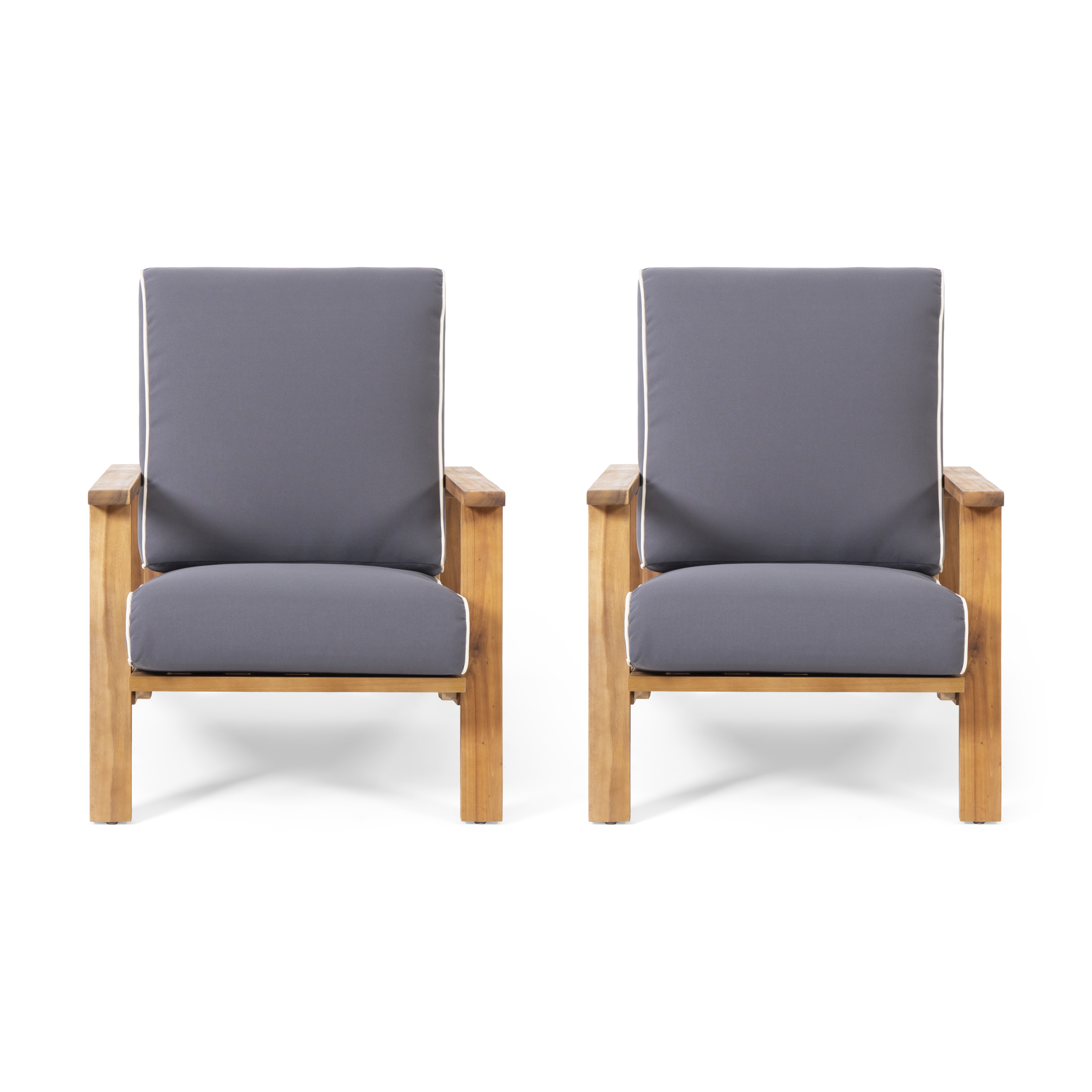 Sudbury Acacia Wood Outdoor Club Chairs with Cushions, Gray, Dark Gray