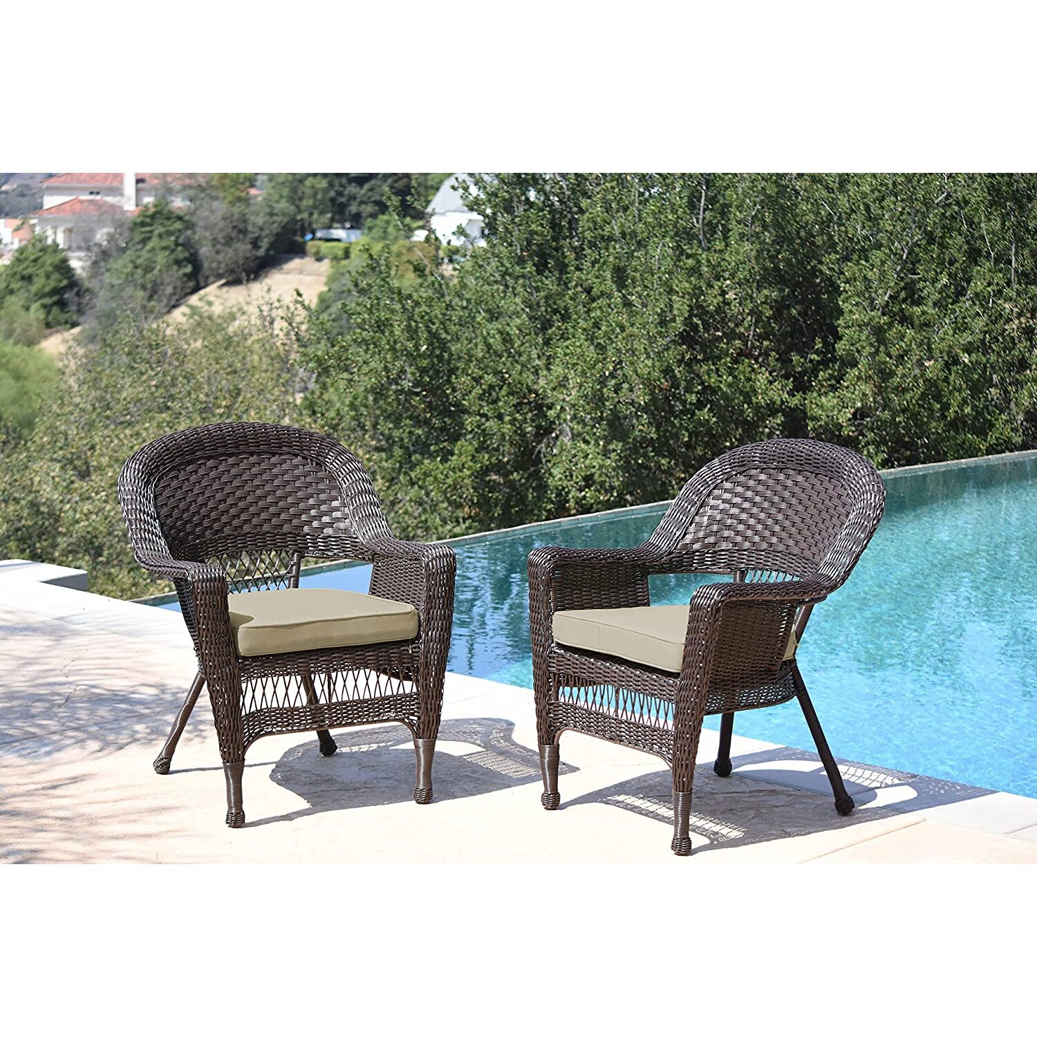 Jeco Wicker Chair in Espresso with Tan Cushion (Set of 2)