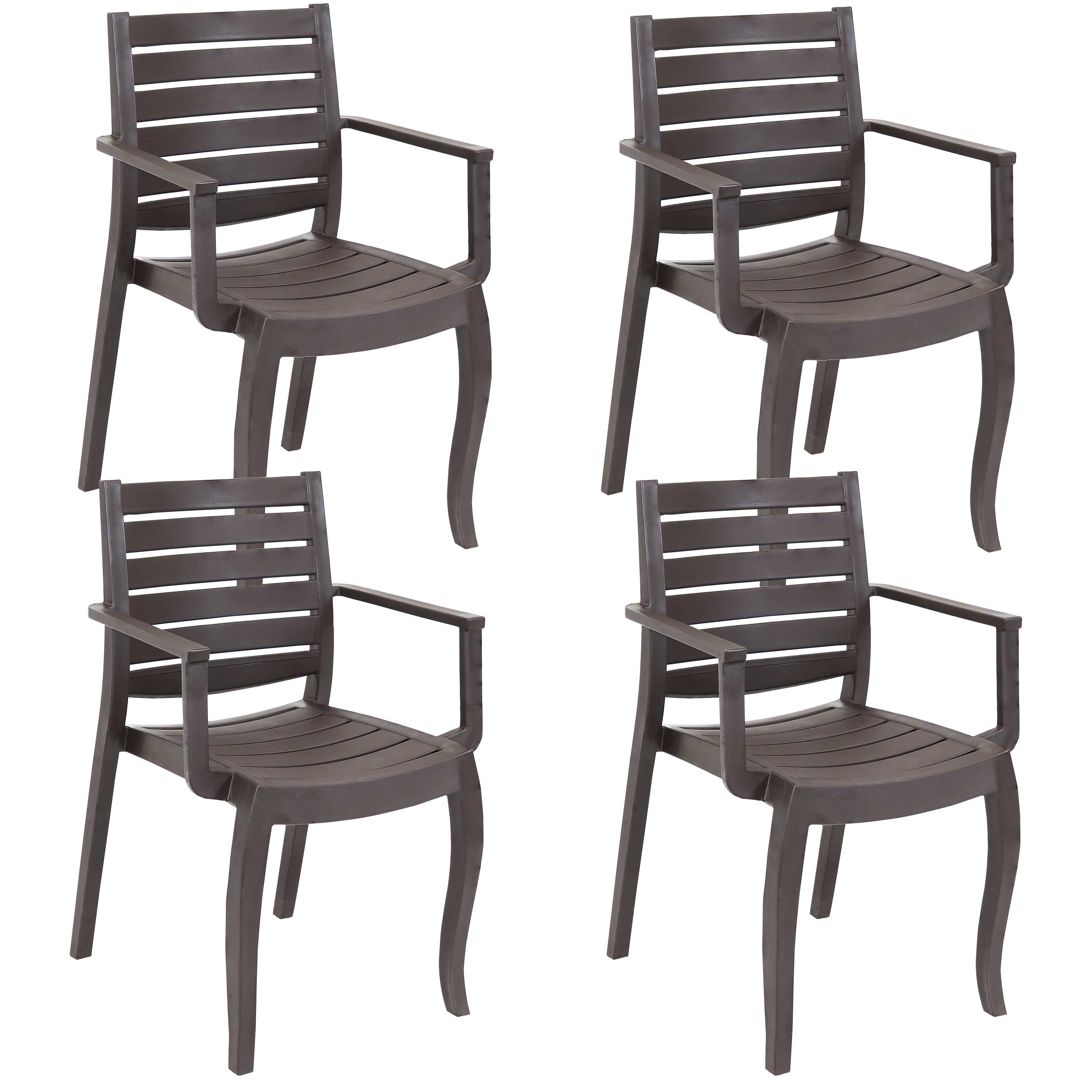 Sunnydaze Polypropylene Stackable Illias Outdoor Patio Arm Chair, Brown, 4pk