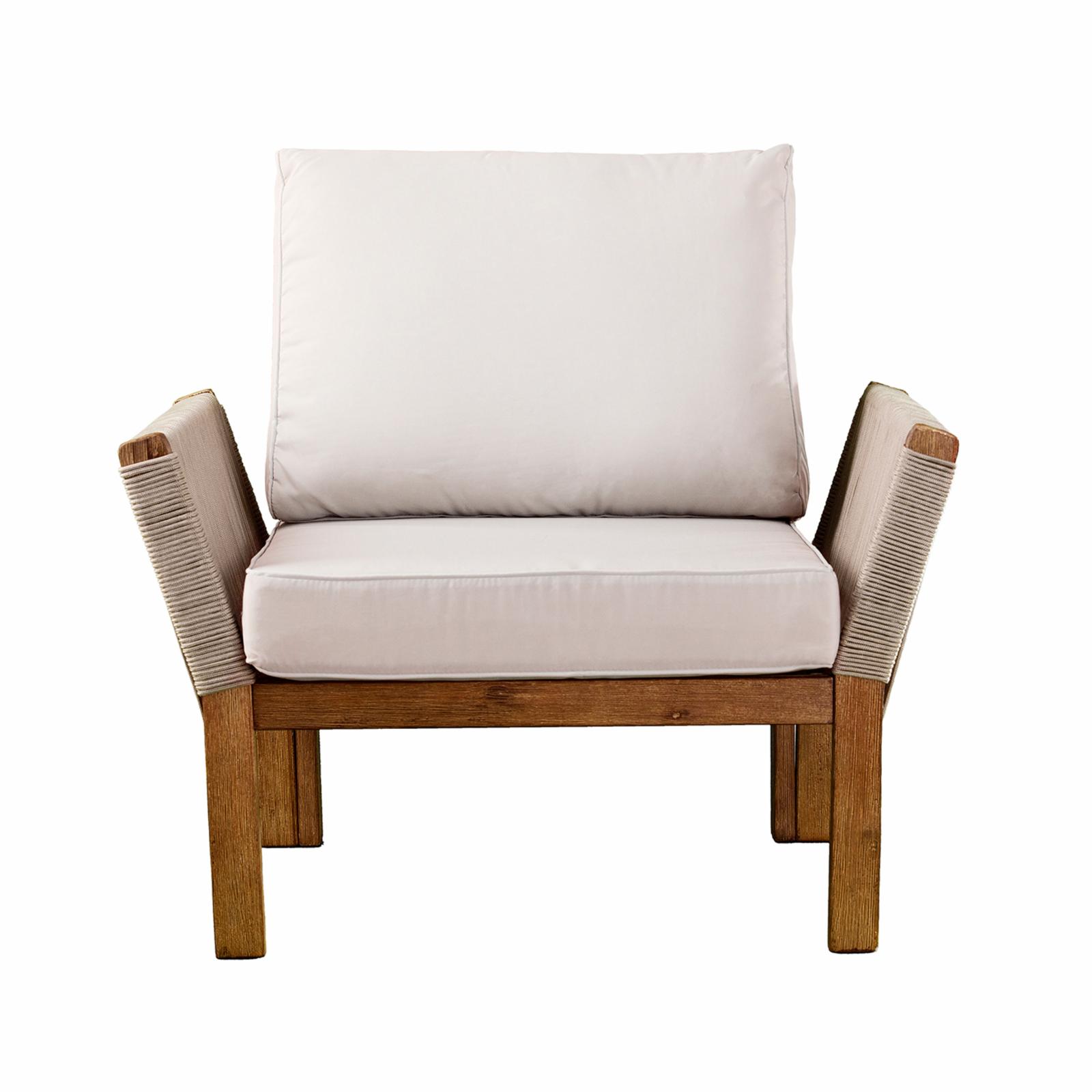 Aletta Outdoor Wooden Club Chairs with Cushions, Set of 4, Teak Finish, Beige