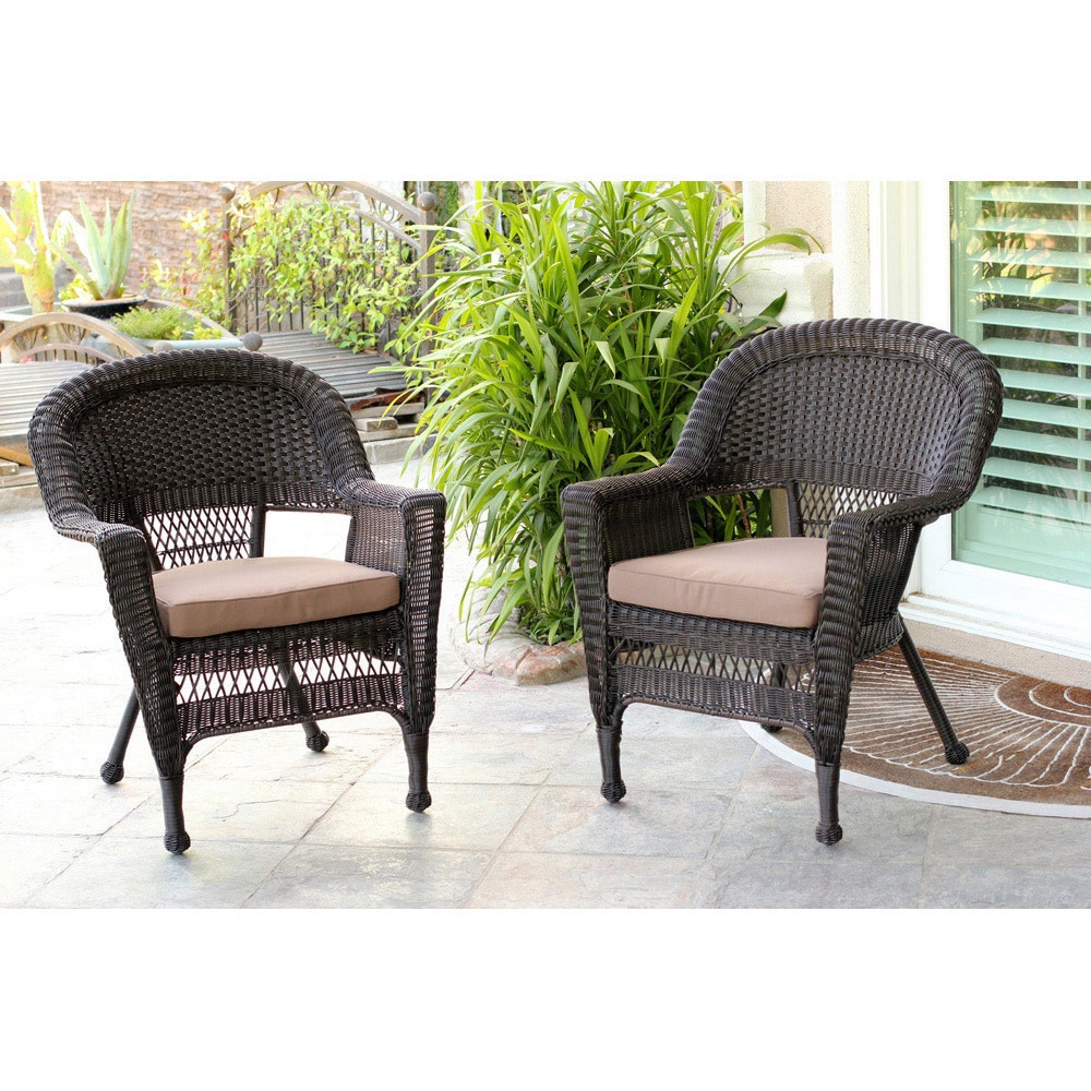 Jeco Espresso Wicker Chairs with Cushions (Set of 2) Brown