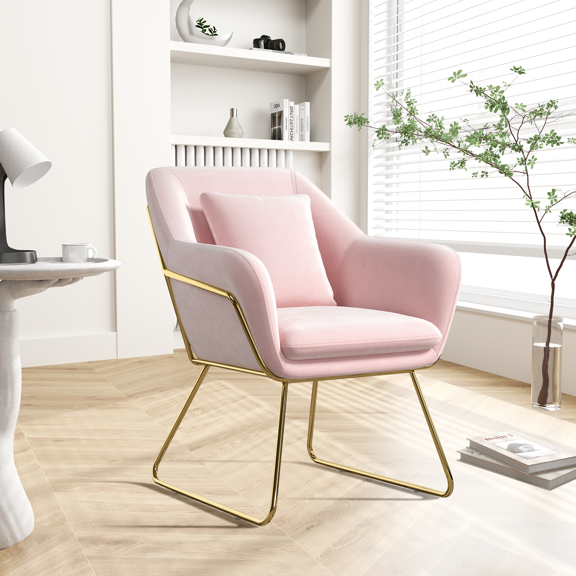 SunFurnn Velvet Accent Chair, Modern Armchair Chair Side Chair with Golden Metal Legs for Living Room/Dressing Room/Bedroom/Home Office/Kitchen, Pink