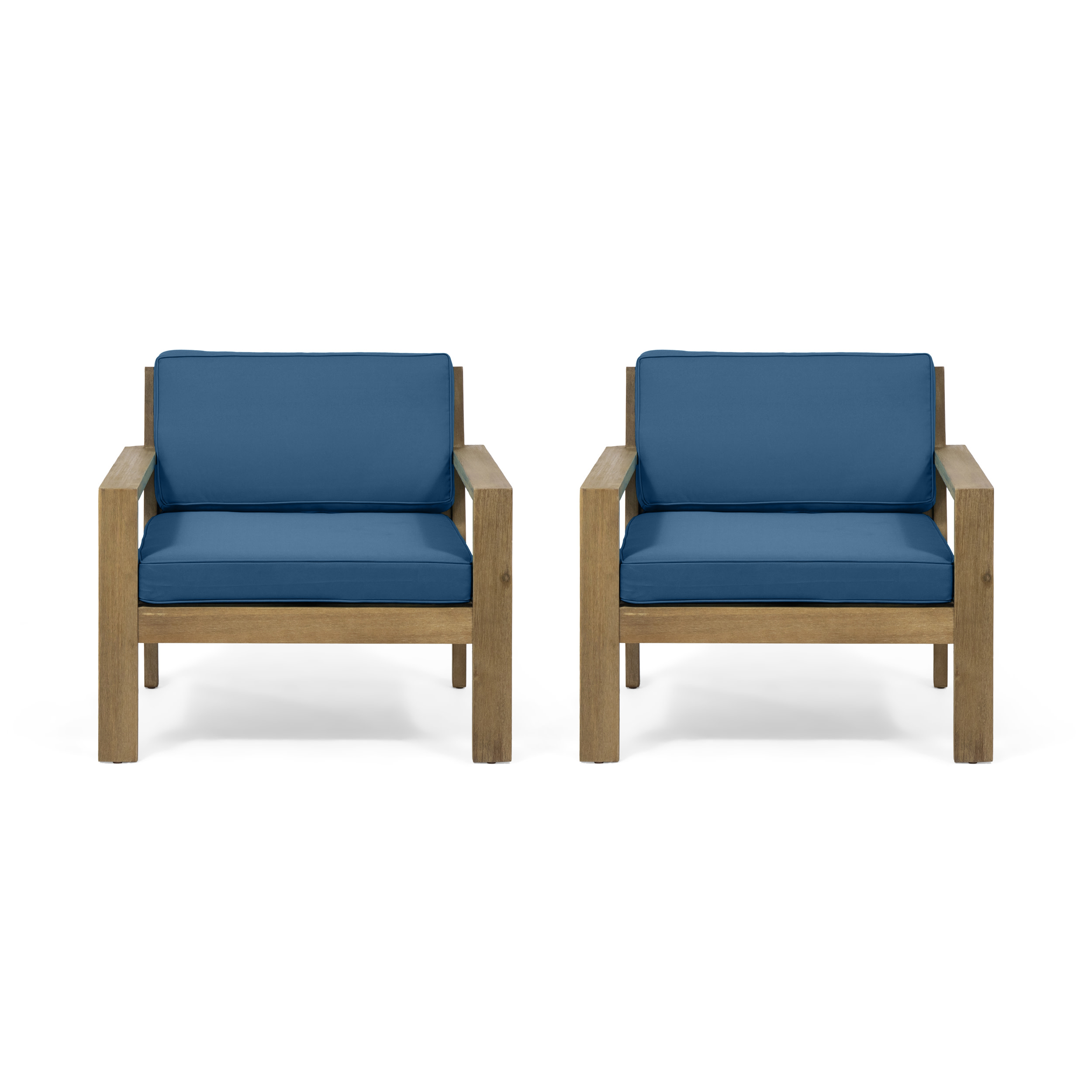GDF Studio Antoine Outdoor Acacia Wood Club Chairs with Cushions, Set of 2, Brushed Light Brown and Dark Teal