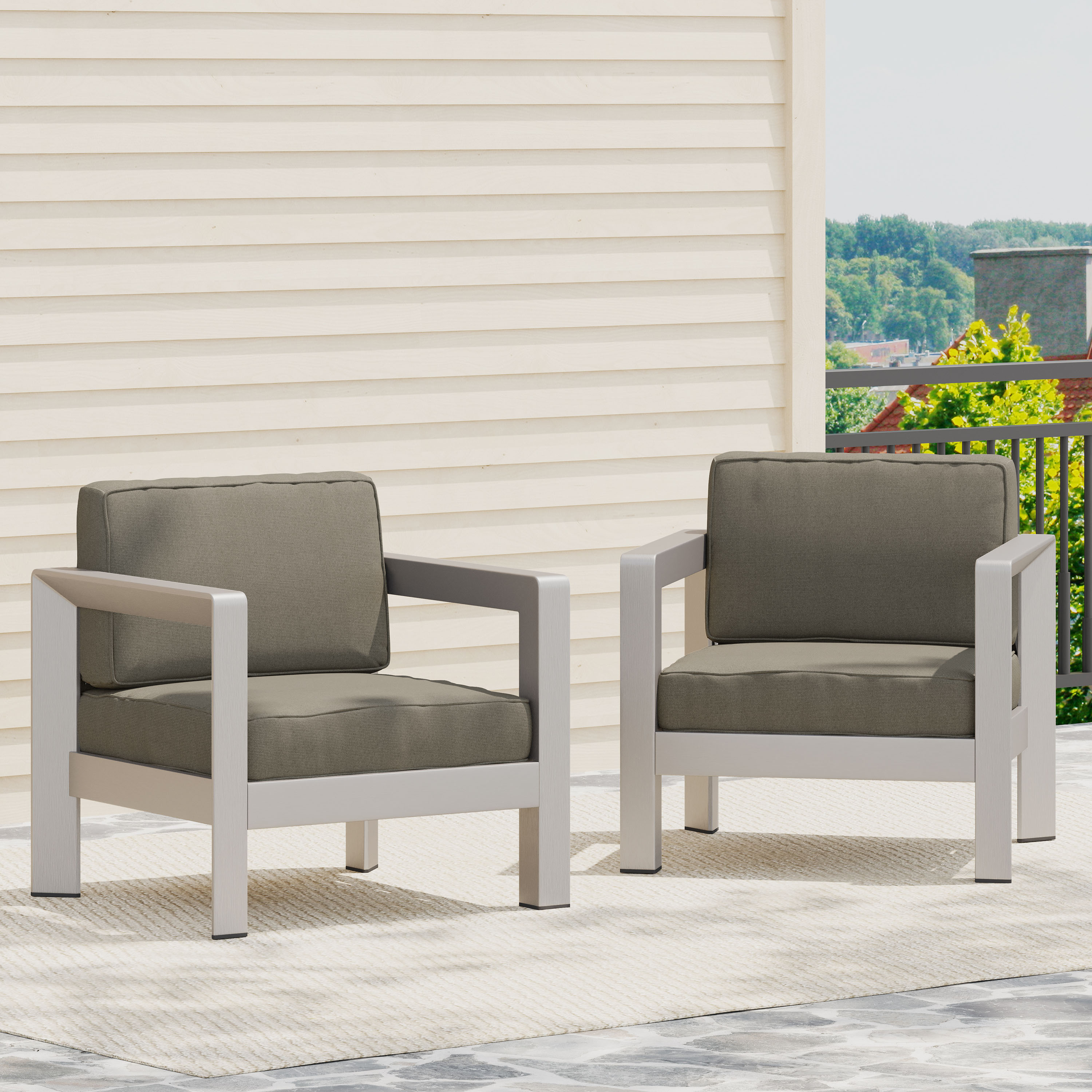 Darius Outdoor Aluminum Club Chairs, Set of 2, Sliver, Gray
