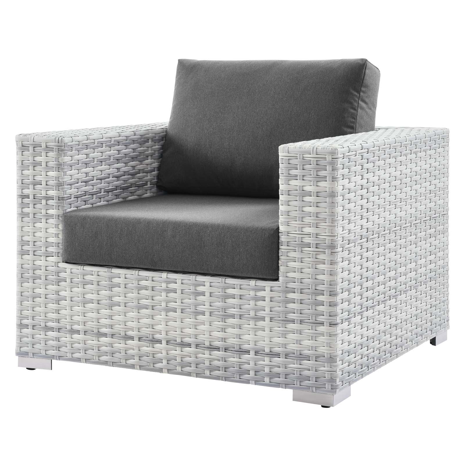 Lounge Chair Armchair, Rattan, Wicker, Grey Gray, Modern Contemporary Urban Design, Outdoor Patio Balcony Cafe Bistro Garden Furniture Hotel Hospitality