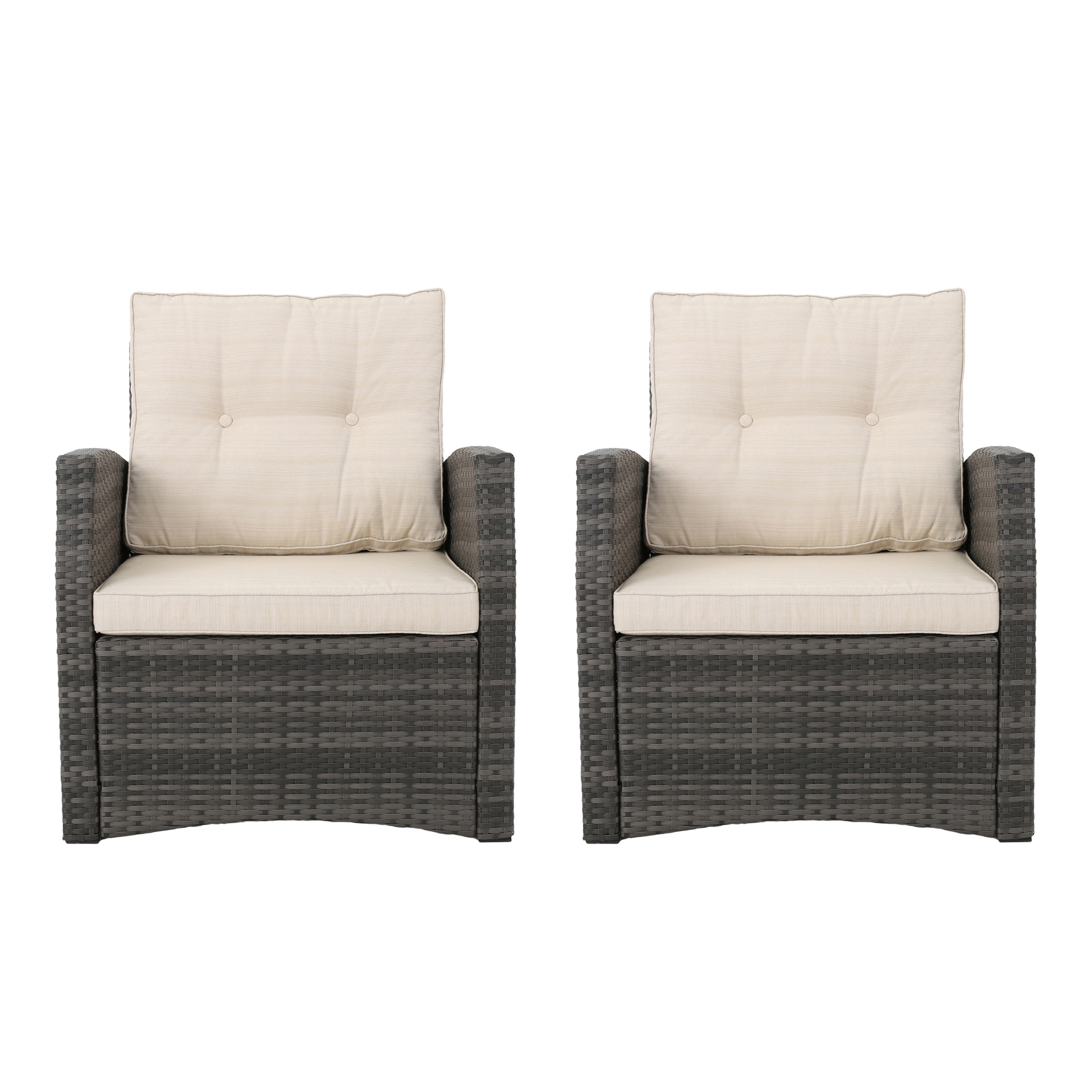 Luton Wicker Outdoor Club Chairs with Cushions, Set of 2, Gray and Beige